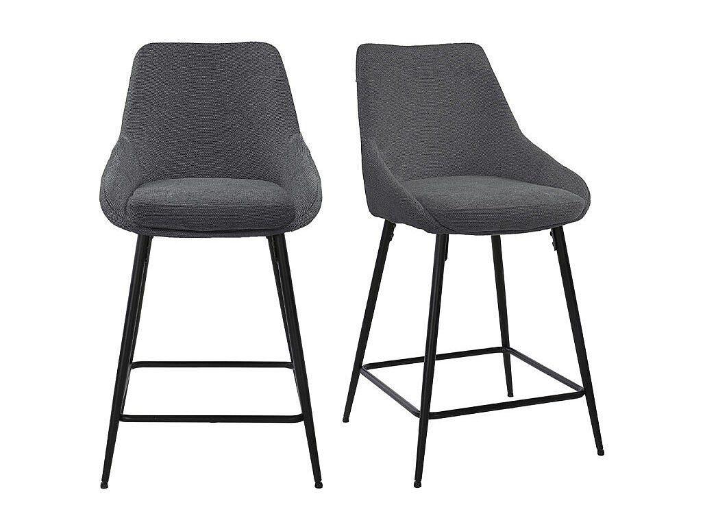Lot 2 chaises de bar tissu anthracite et pieds en métal noir - JAZZY 2