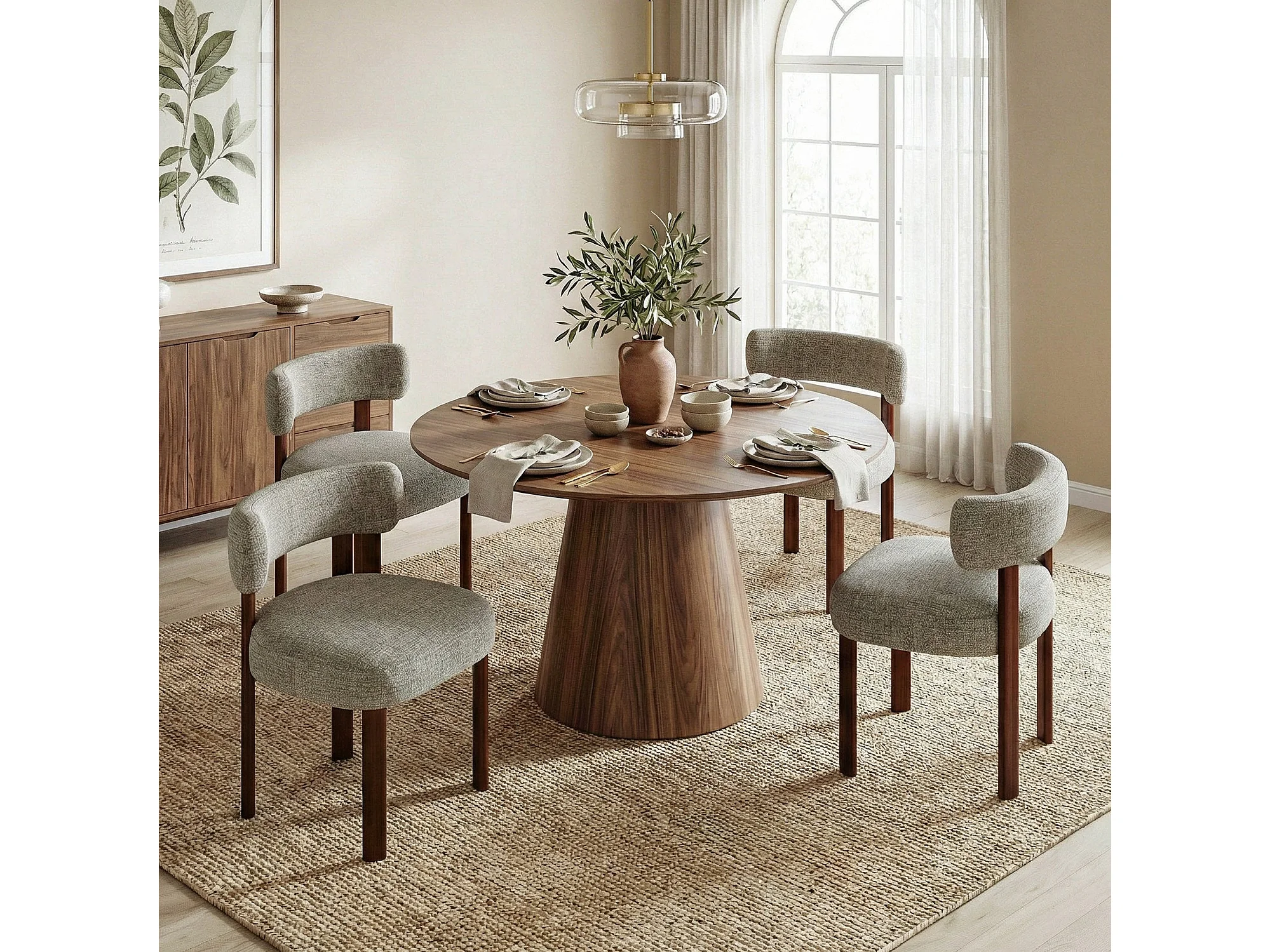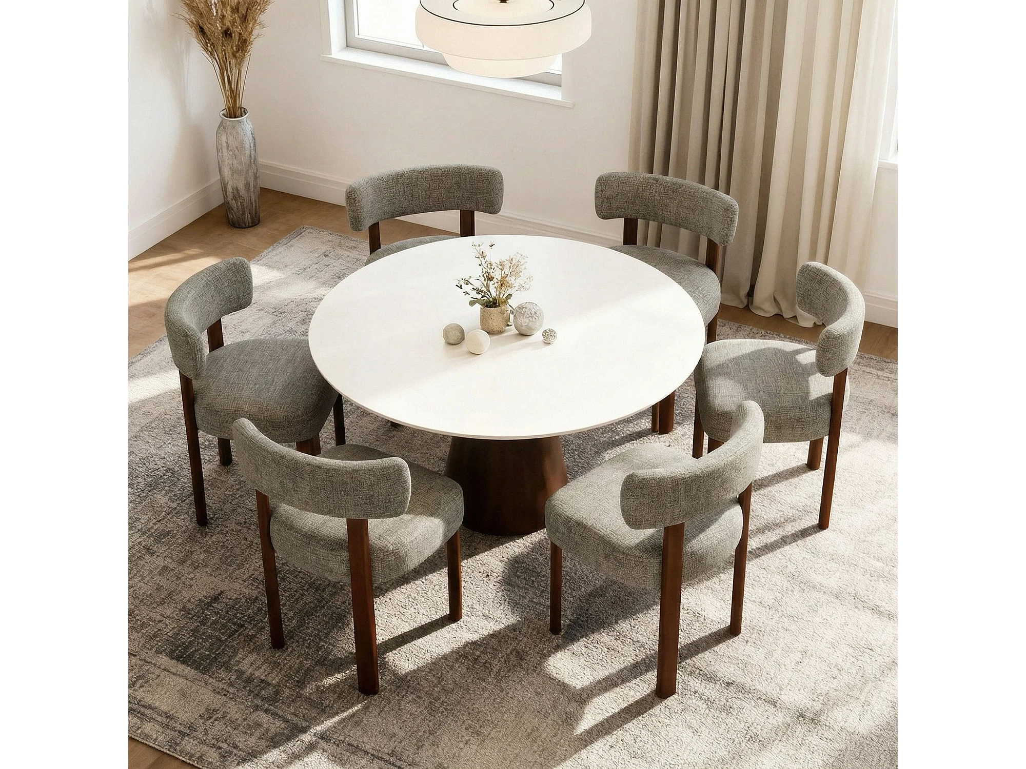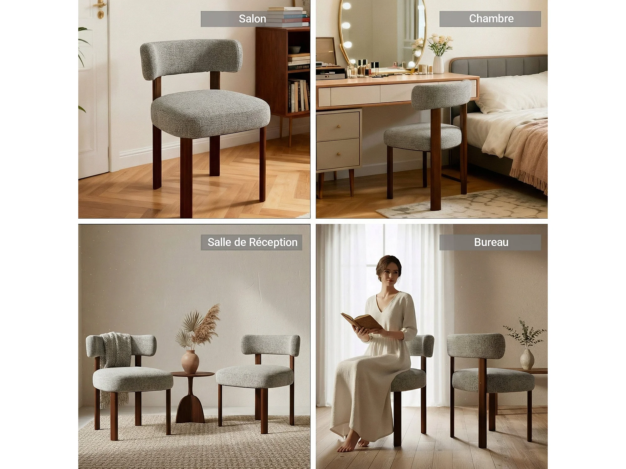 Lot de 2 chaises de salle à manger en bois massif marron SMARTUE, tissu bouclé, dossier incurvé