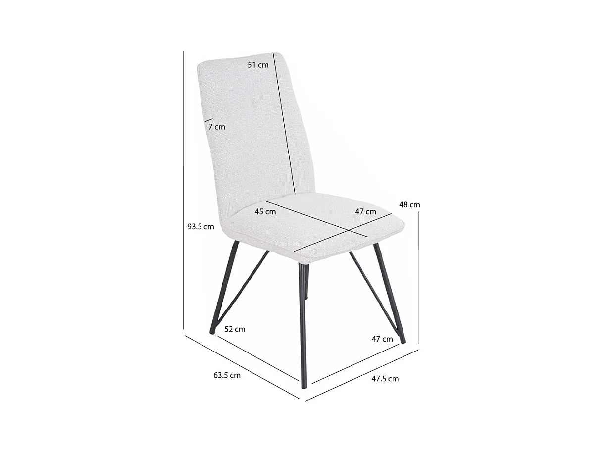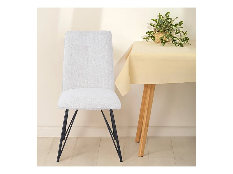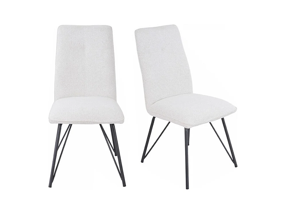 Lot 2 chaises en tissu doux écru avec pieds en métal noir - LUCAS
