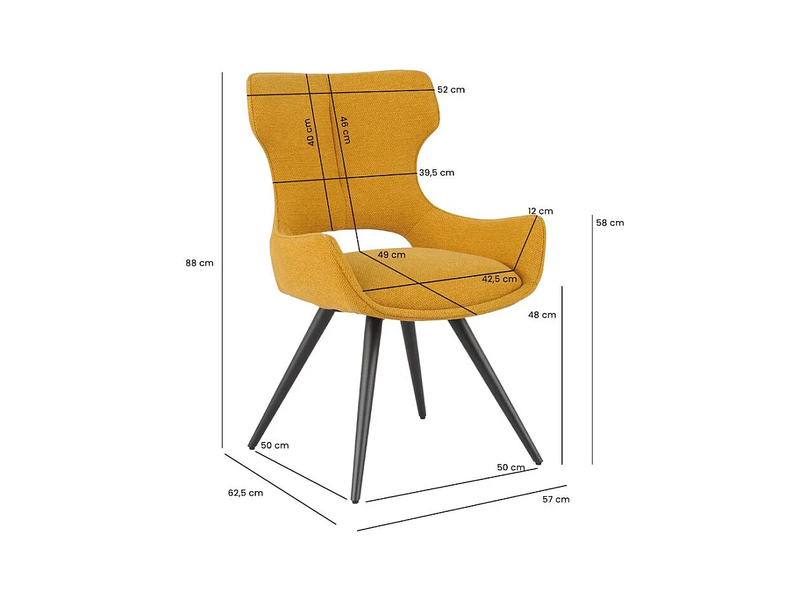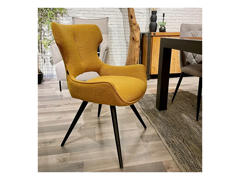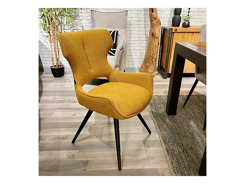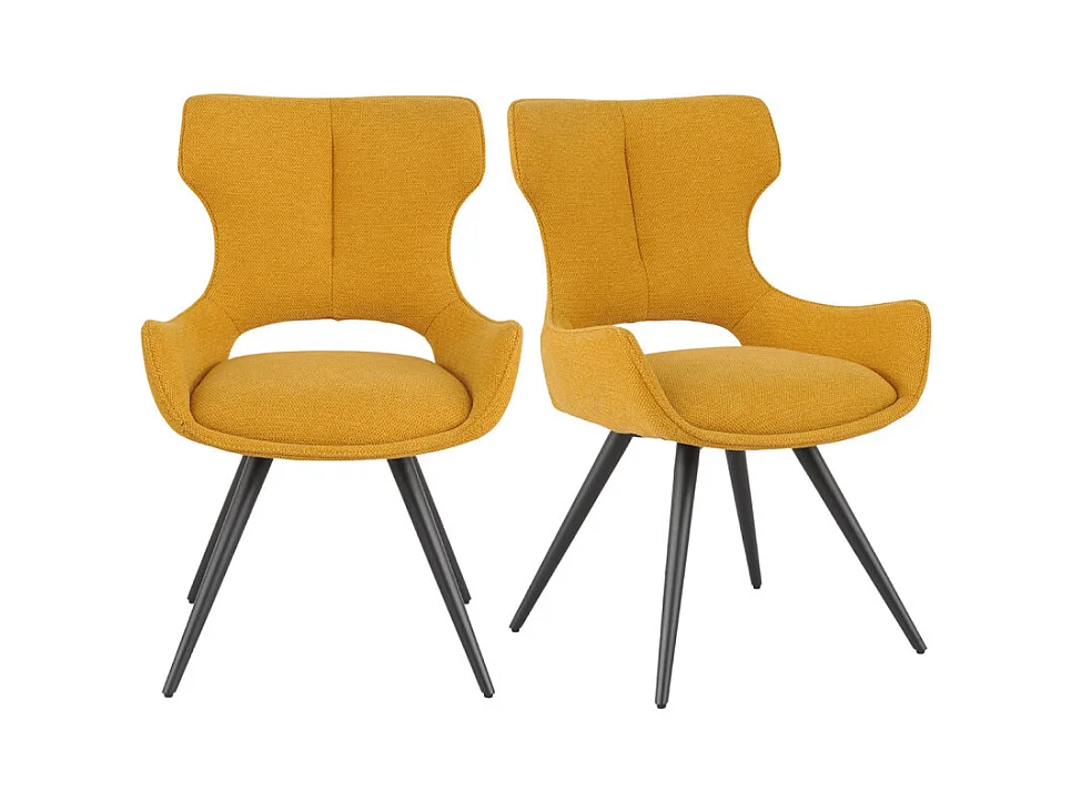 Lot 2 chaises pivotantes 180° en tissu jaune et pieds métal – SEVILLE