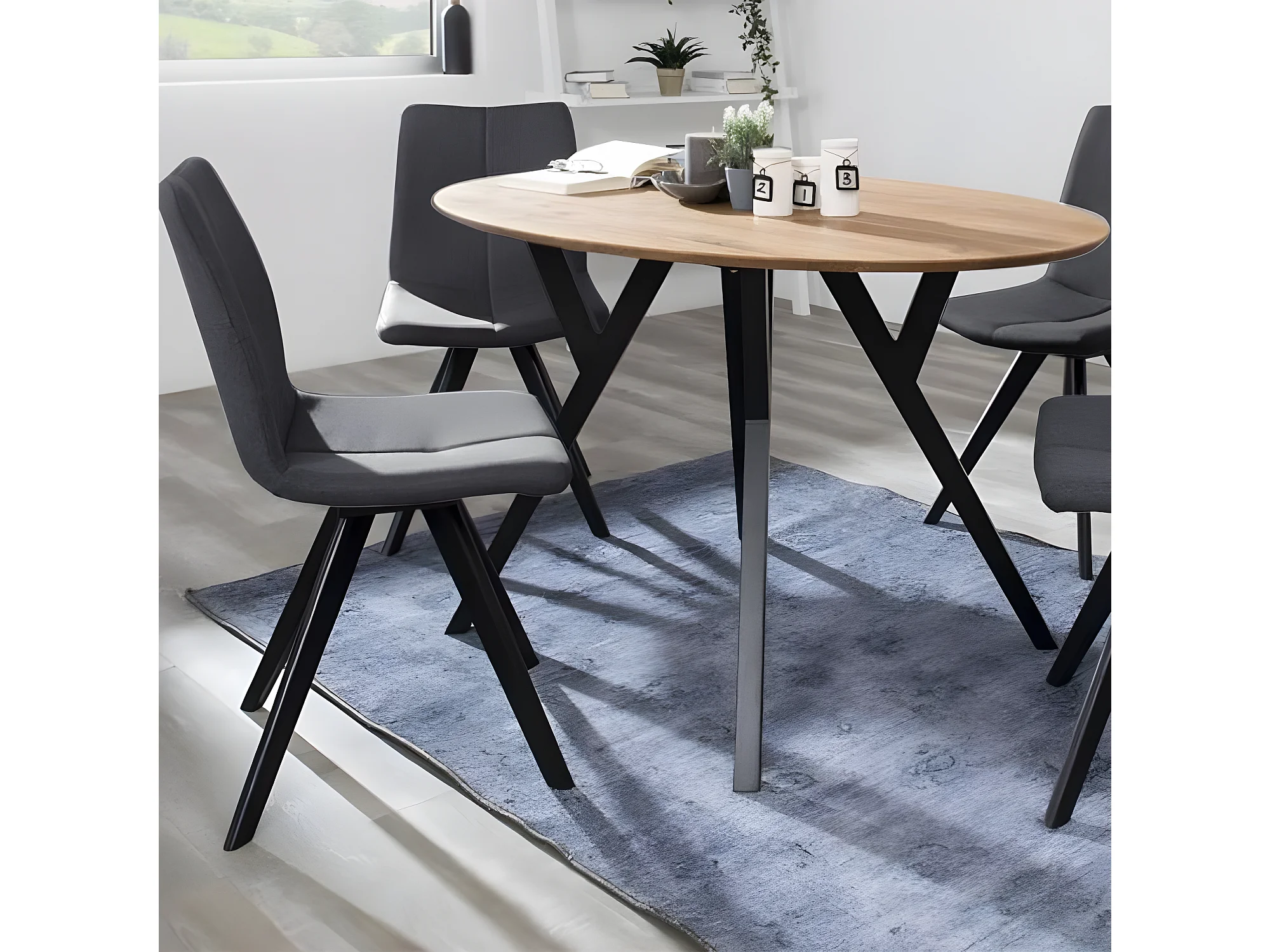 Lot 2 chaises tissu gris foncé et piètement chêne massif noir - MISU
