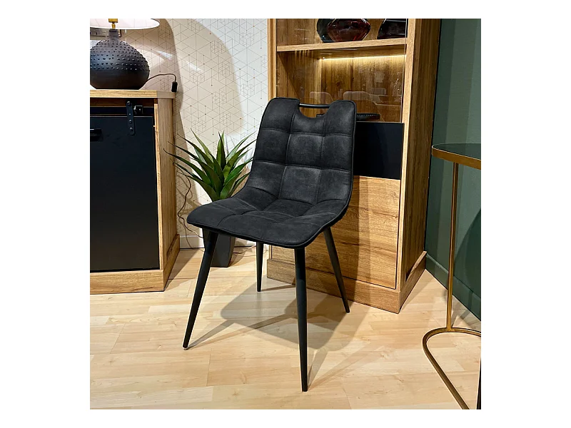 Lot 2 chaises tissu noir vintage avec poignée et pieds noirs - MUSE 2