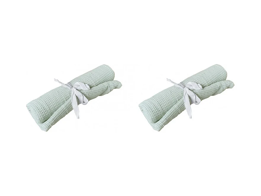 Lot 2 chemins de table en coton et lin vert 45 x 150 cm - CUADRO 8948