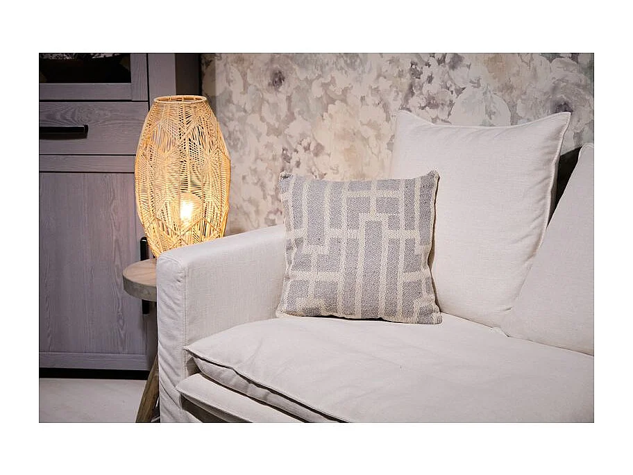Coussin carré 40 x 40 cm coton brodé avec dessin tribal gris - FLARE