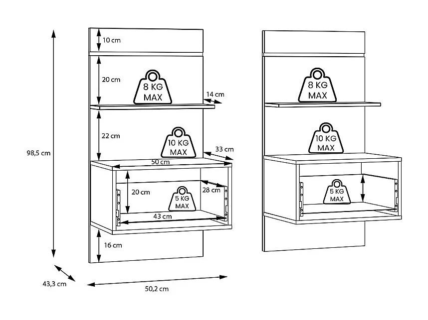 Lot 2 de chevets 98,5 cm décor chêne et blanc LED intégrés – ILLYA