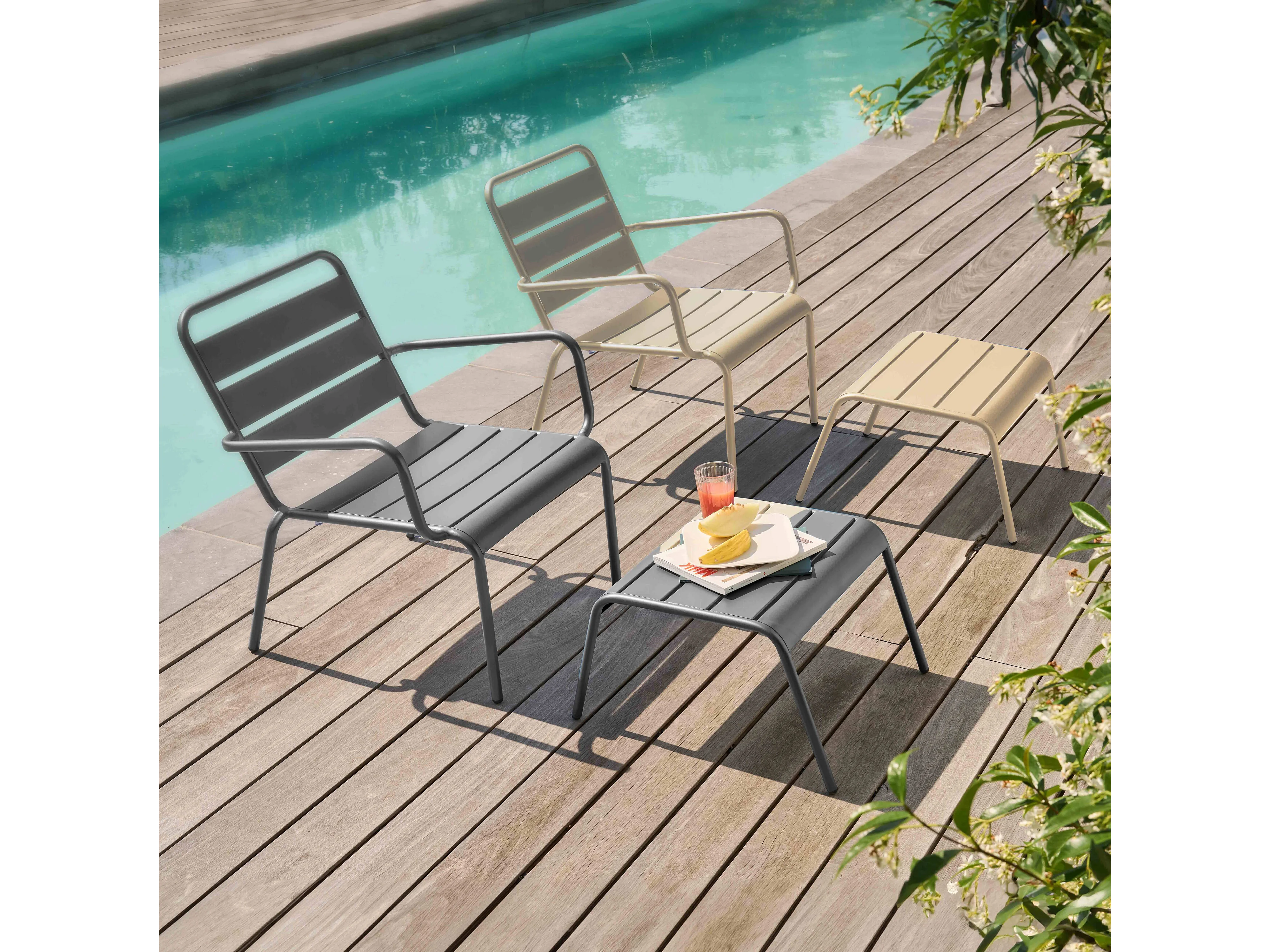 Lot 2 fauteuils relax avec repose-pieds métal gris et ivoire - Palavas