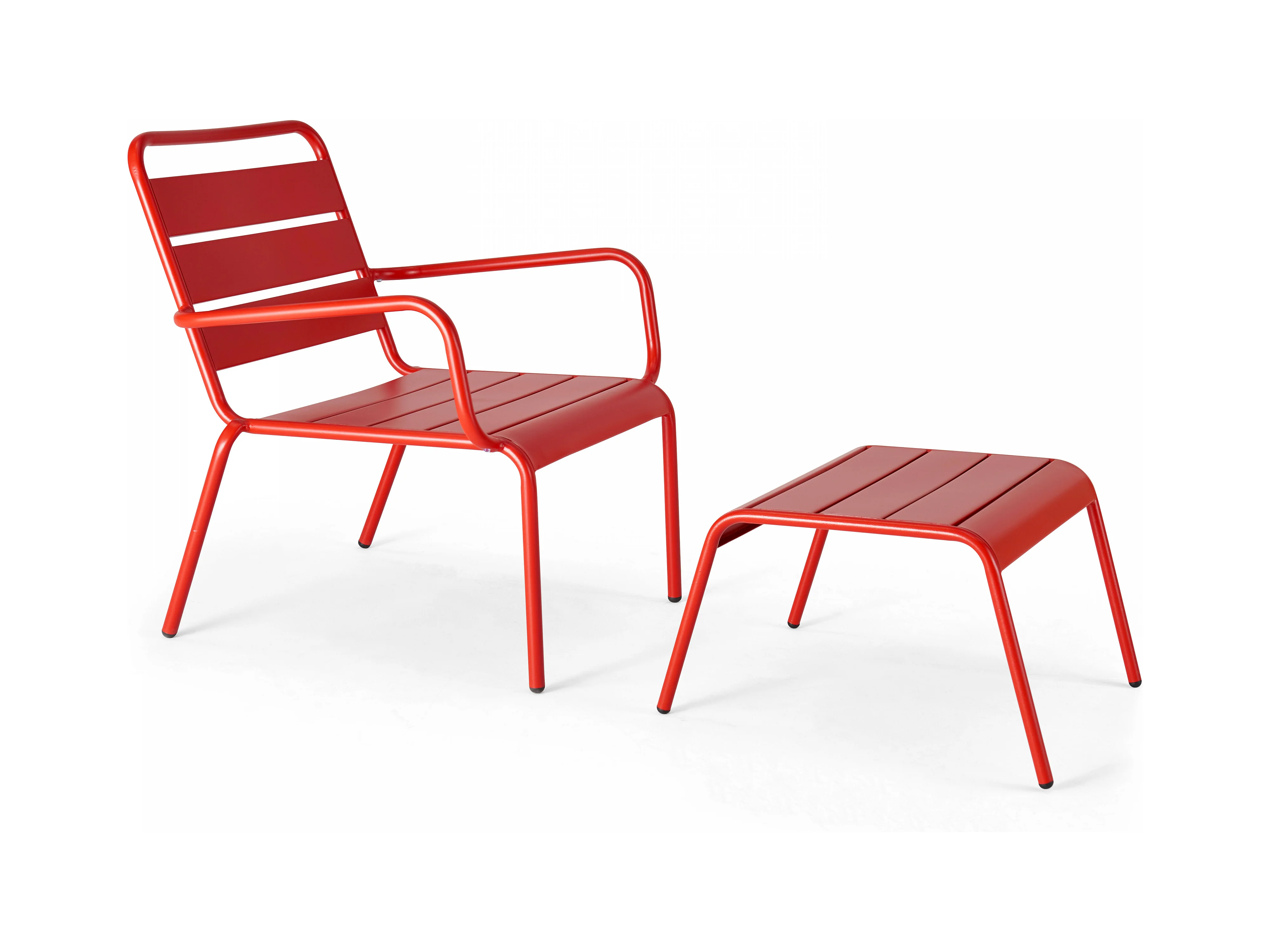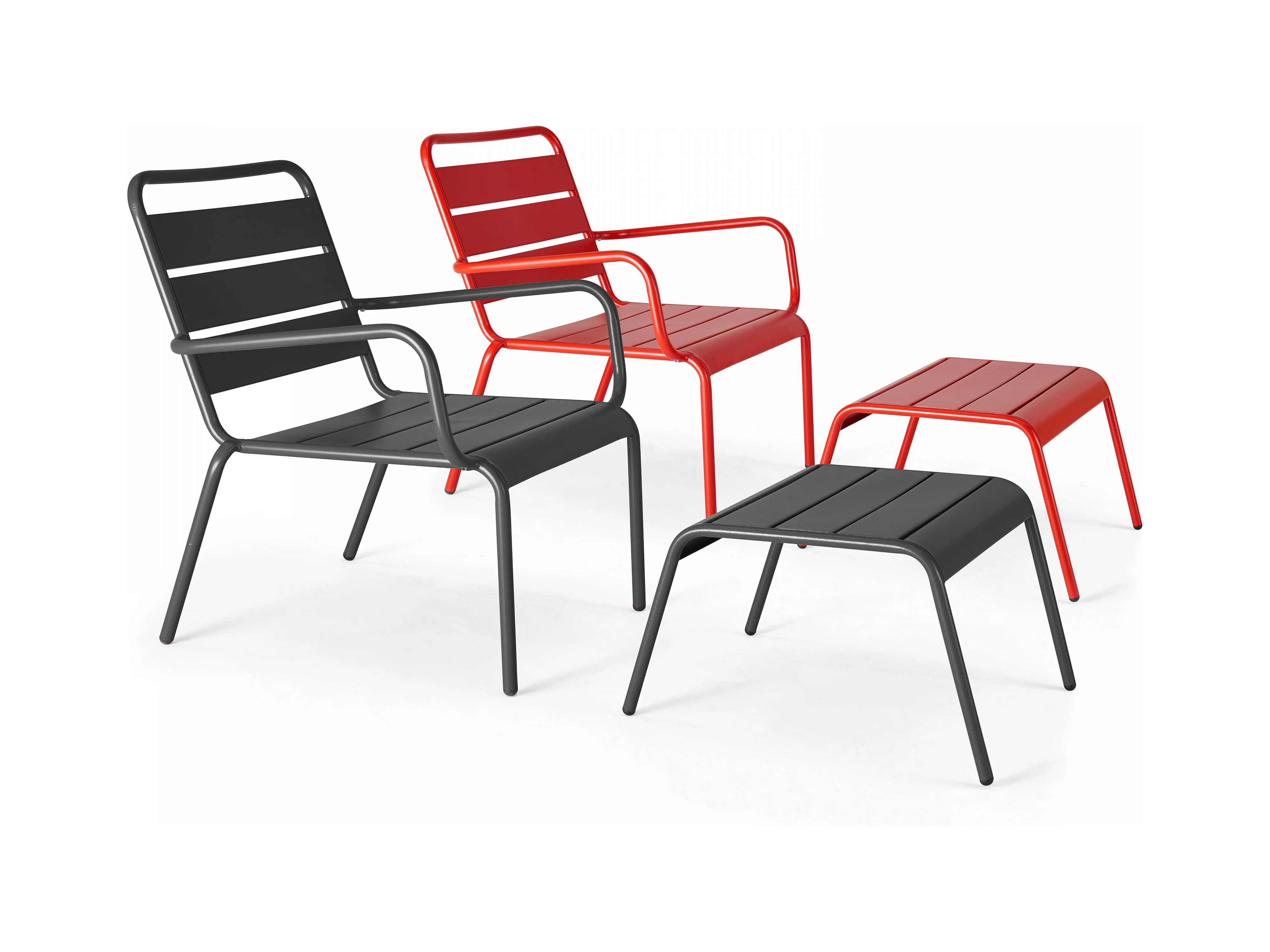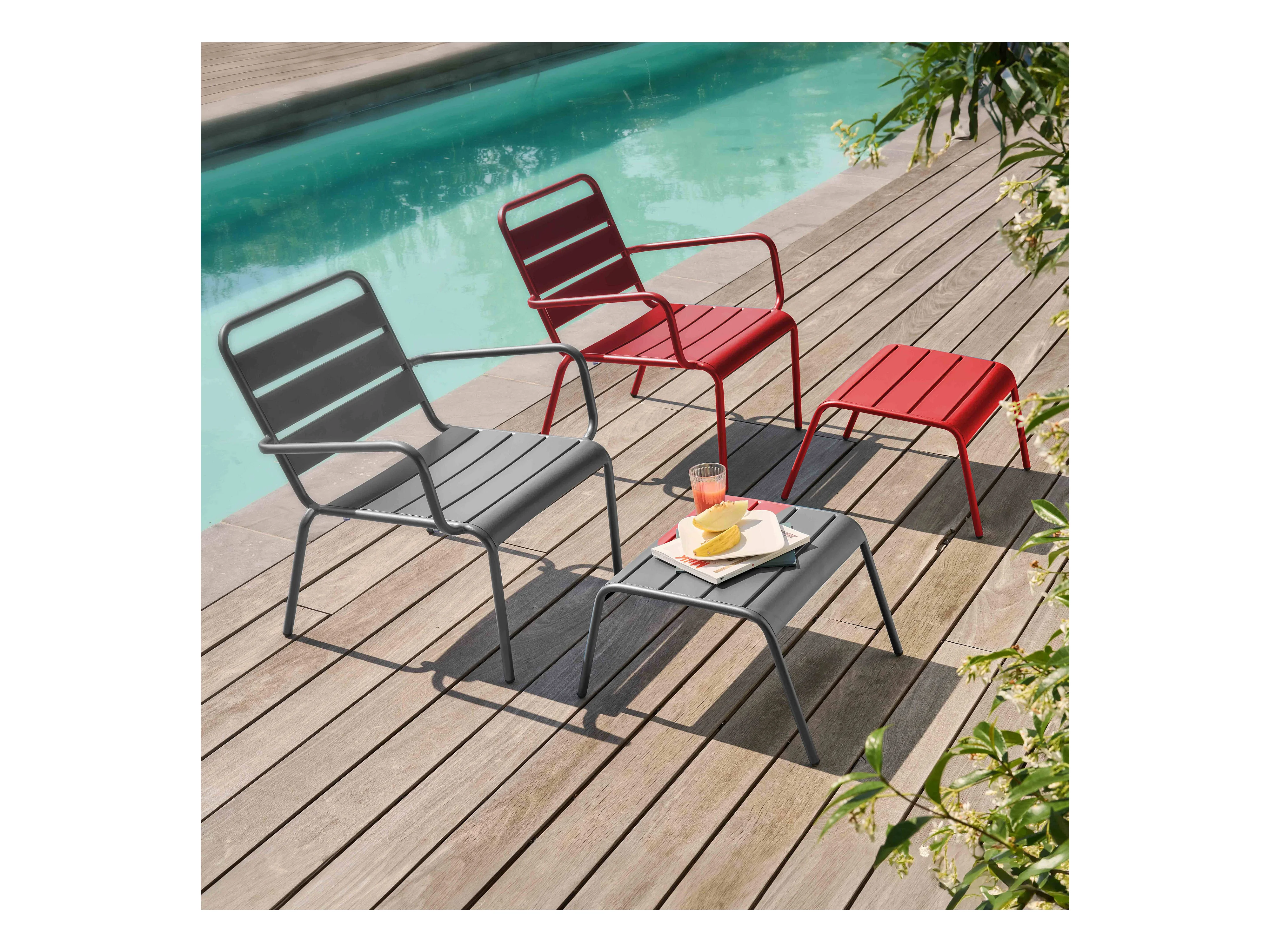 Lot 2 fauteuils relax avec repose-pieds métal gris et rouge - Palavas