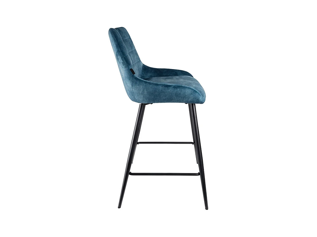 Lot 2 tabourets de bar en velours bleu canard pied métal noir - BRANDY