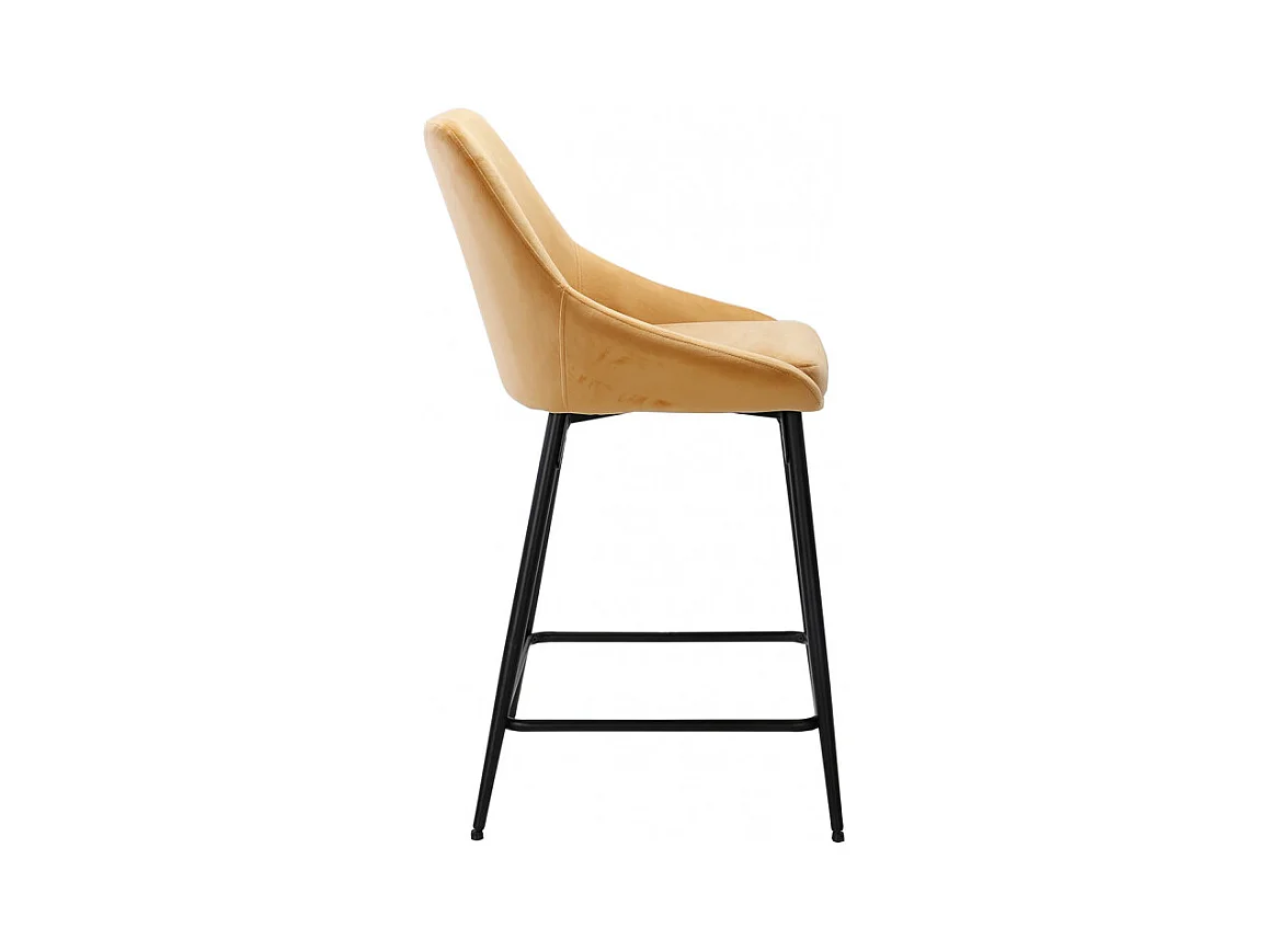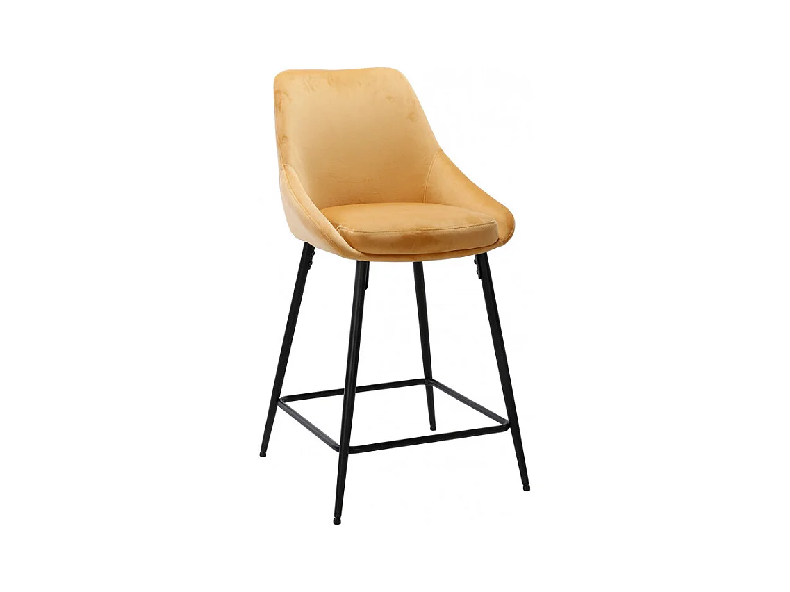 Lot 2 tabourets de bar en velours jaune et piètement métal - JAZZY