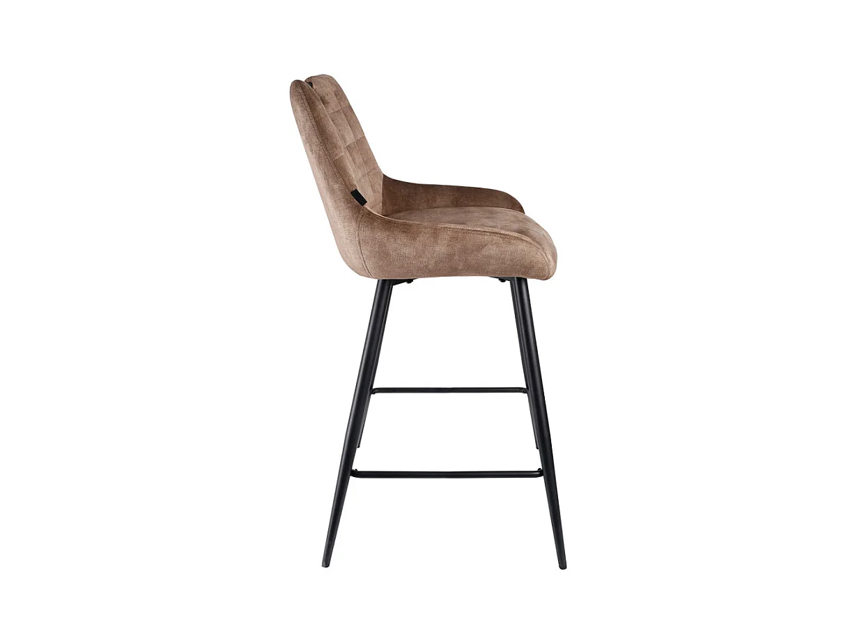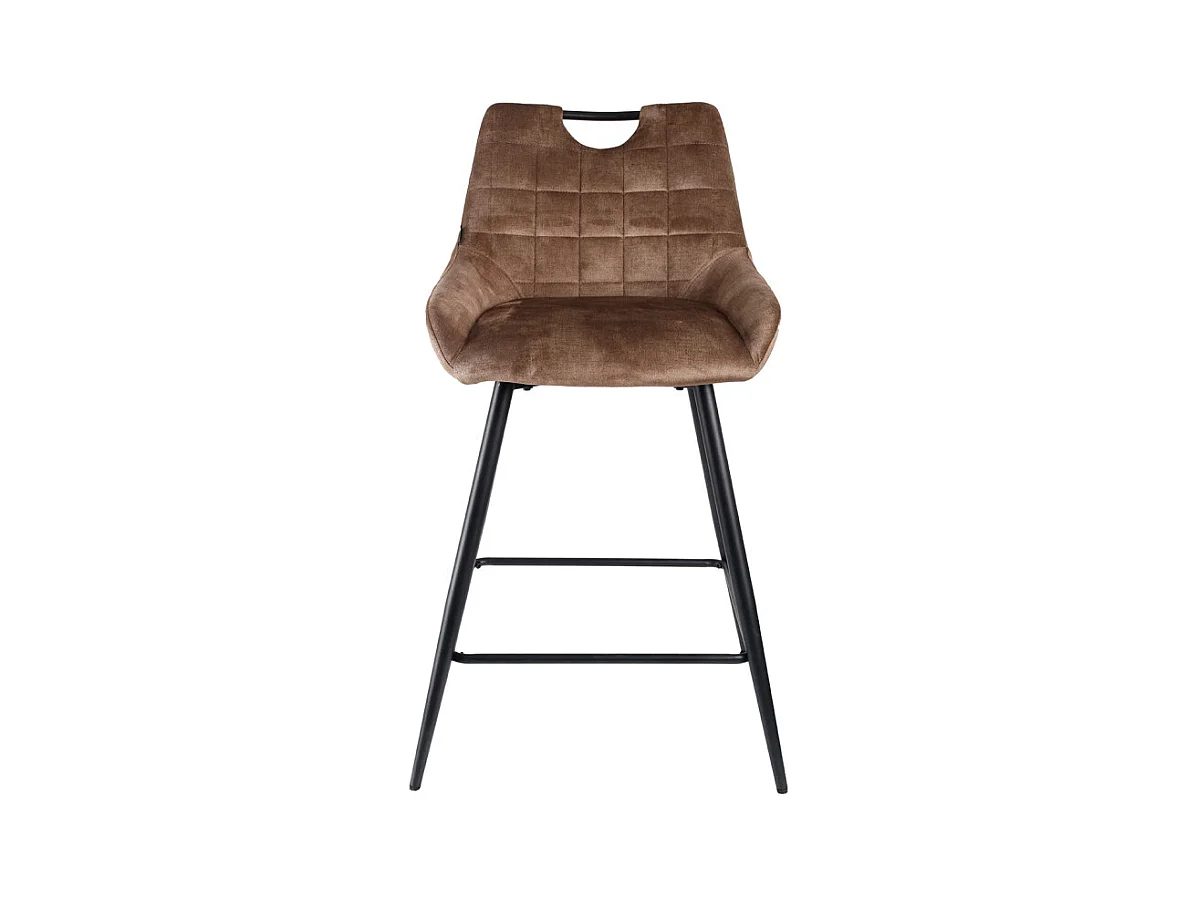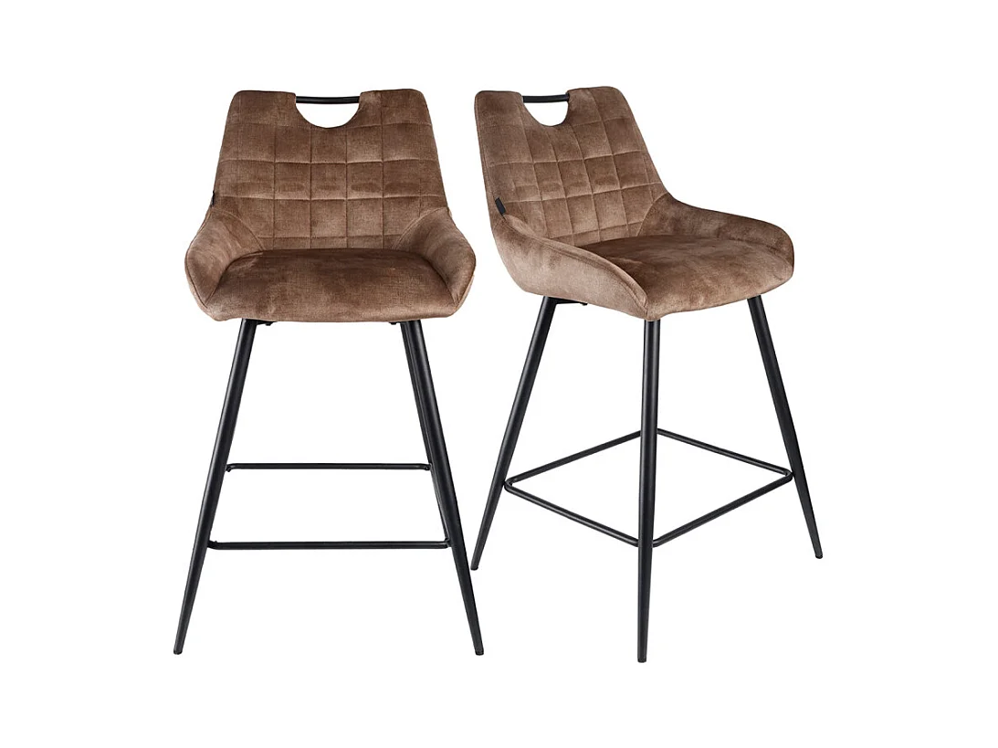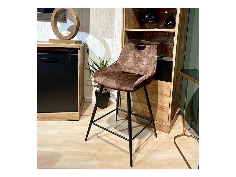 Lot 2 tabourets de bar en velours marron avec pied métal noir - BRANDY