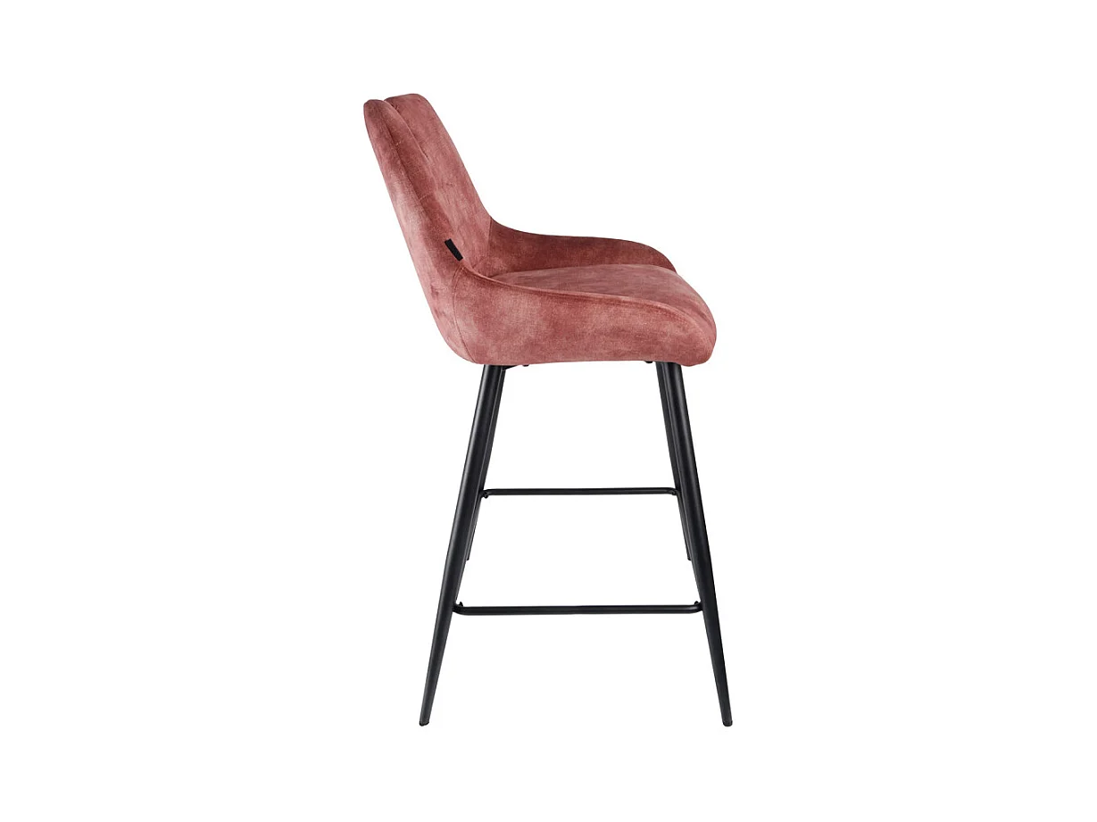 Lot 2 tabourets de bar en velours rose avec pied métal noir - BRANDY