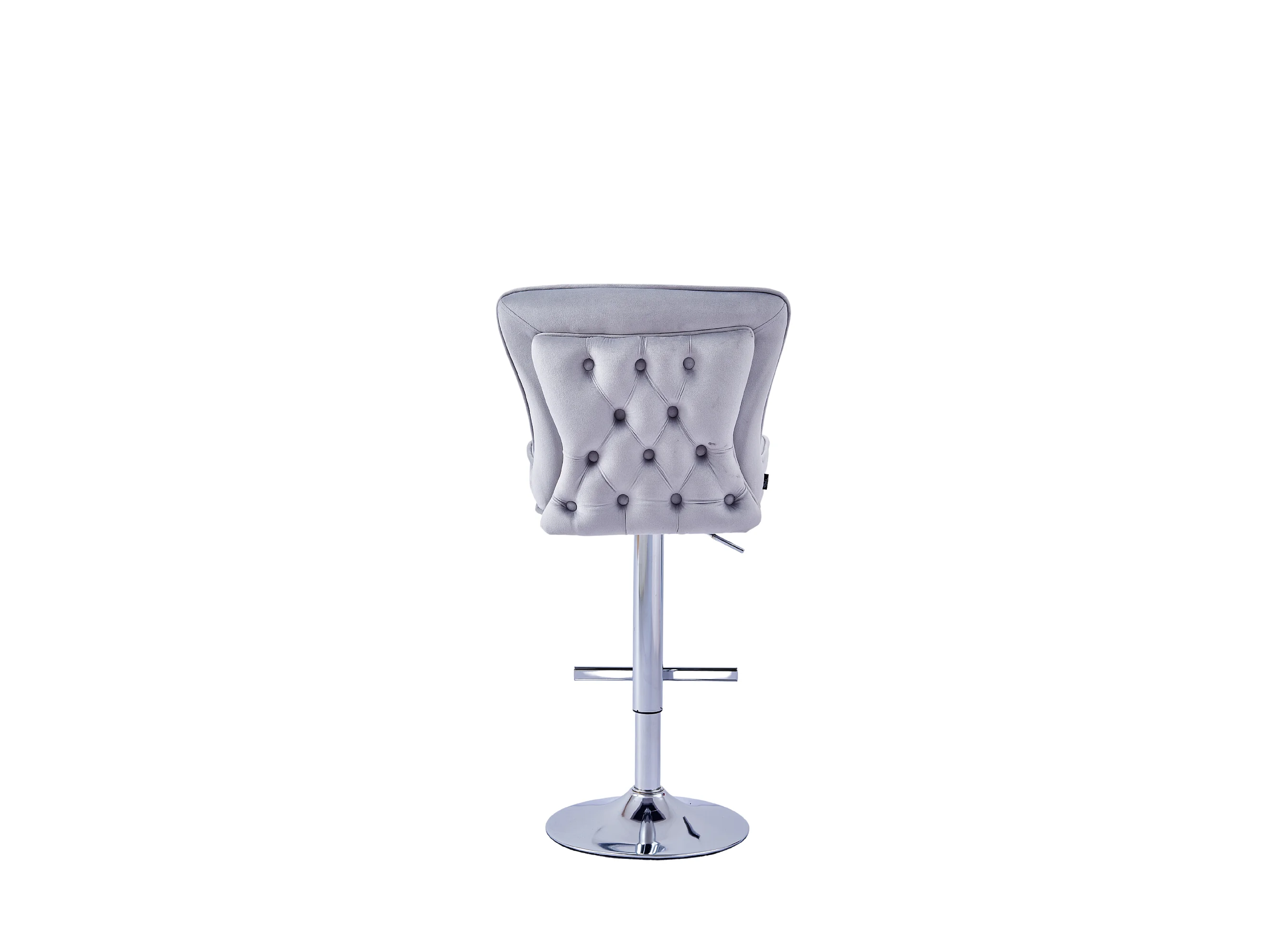 Lot 2 Tabourets de Bar Gabrielle Velours Gris Pieds Chrome Hauteur Assise 65cm