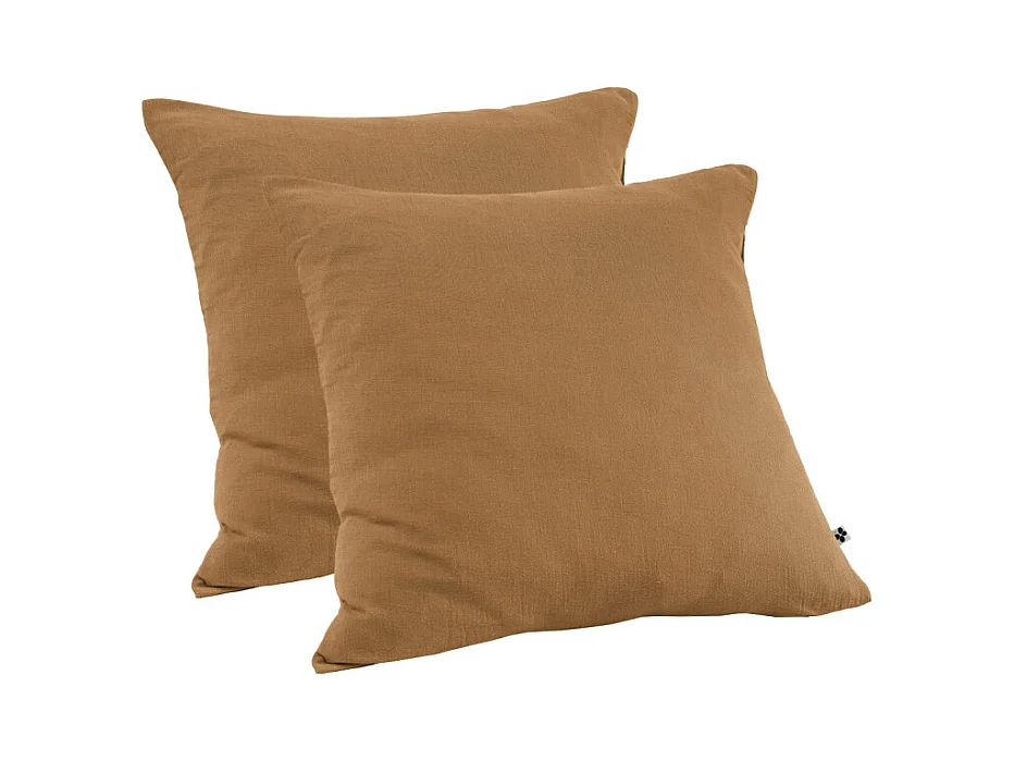 Lot 2 taies d'oreillers 60x60 cm double gaze de coton camel - PEPA 1