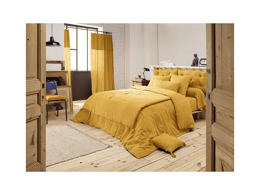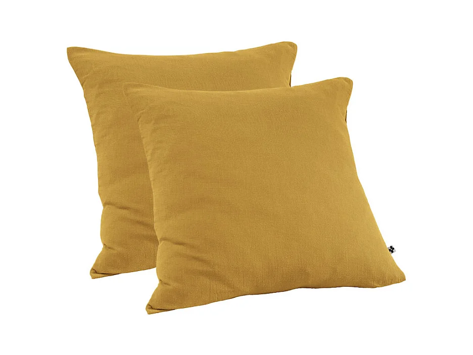 Lot 2 taies d'oreillers 60x60 cm double gaze de coton jaune - PEPA 1