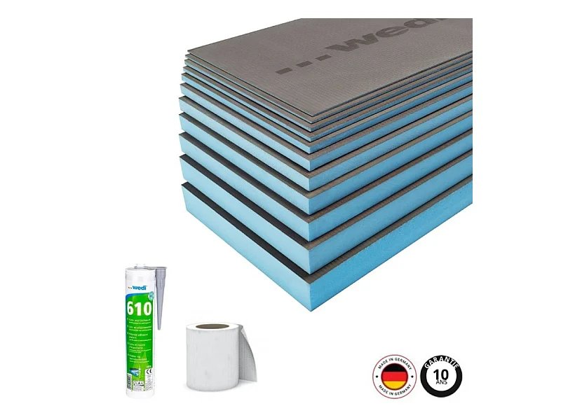 Pack 3 panneaux de construction WEDI 250 x 60 x 10 cm + colle polymere étanchéité 610 + bande d'armature collante