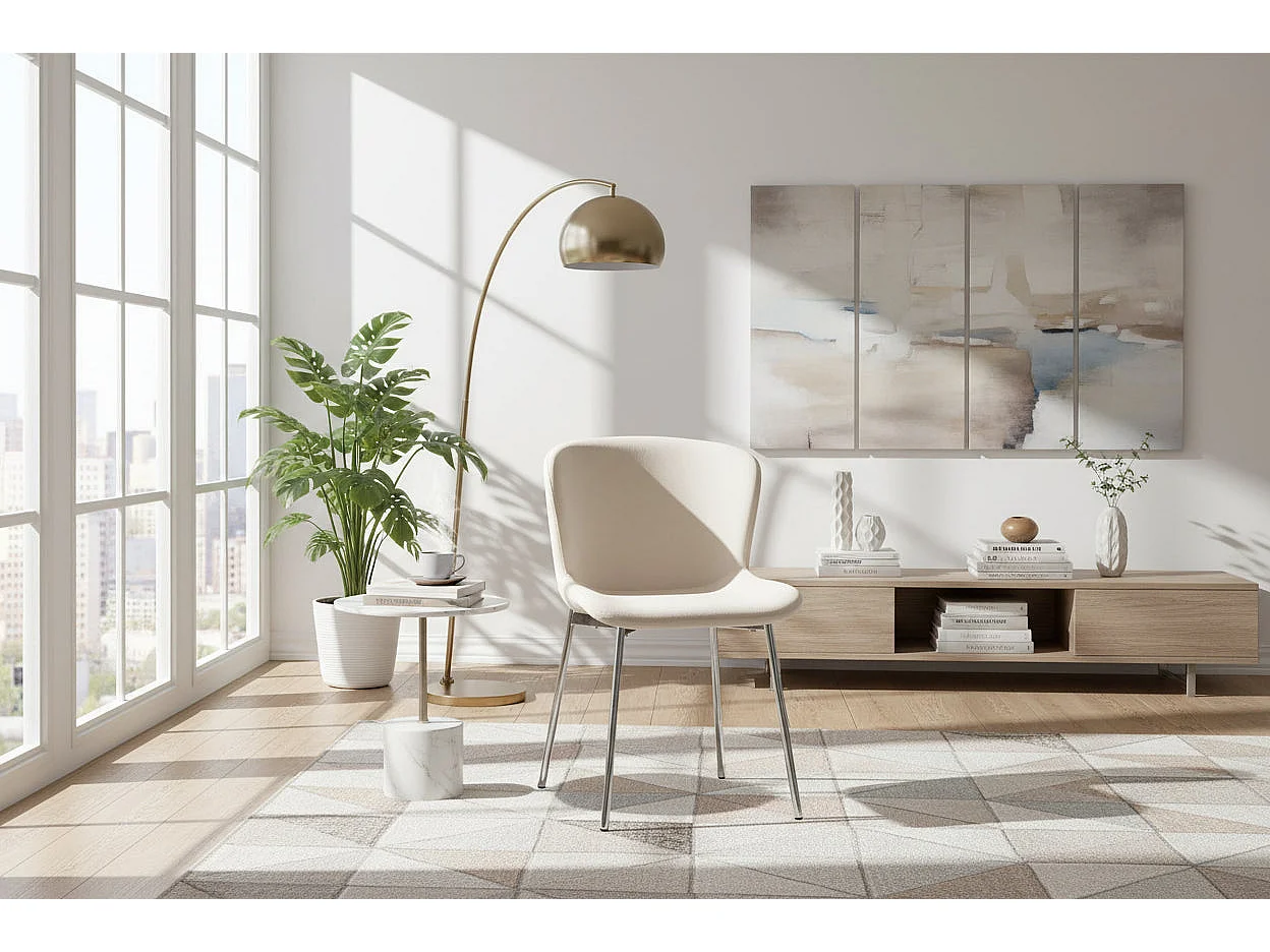 Lot 4 Chaises Salle à Manger Elen Velours Écru Pieds Chrome