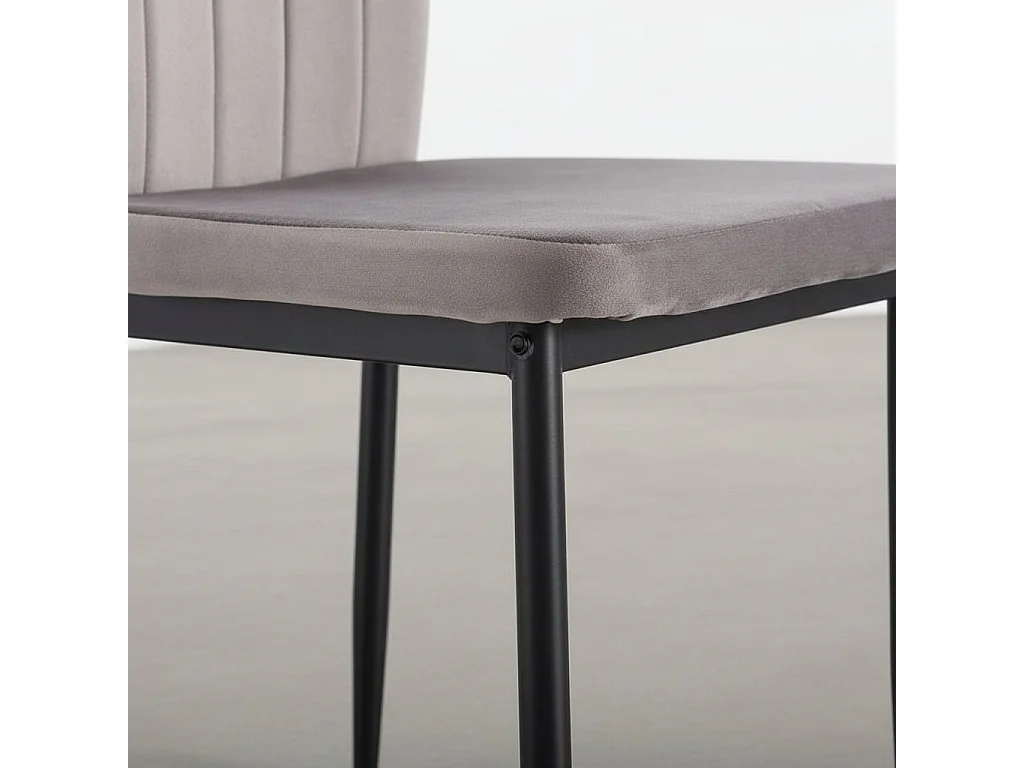 Lot 4 Chaises Salle à Manger Pony Velours Gris Pieds Métal Noir 57x42x95cm
