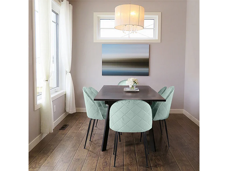Lot 4 chaises vertes en velours et pieds métal noir - FARA