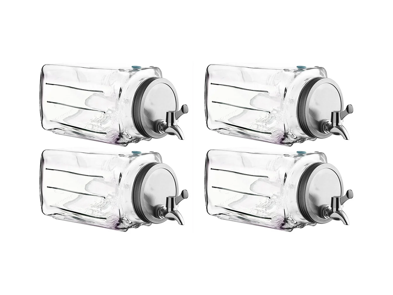 Lot 4 distributeur de boissons en verre 3L, pot transparent avec robinet, récipient à jus limonade glacée avec couvercle - L. 32.5 x P. 13.5 x H. 13.5cm