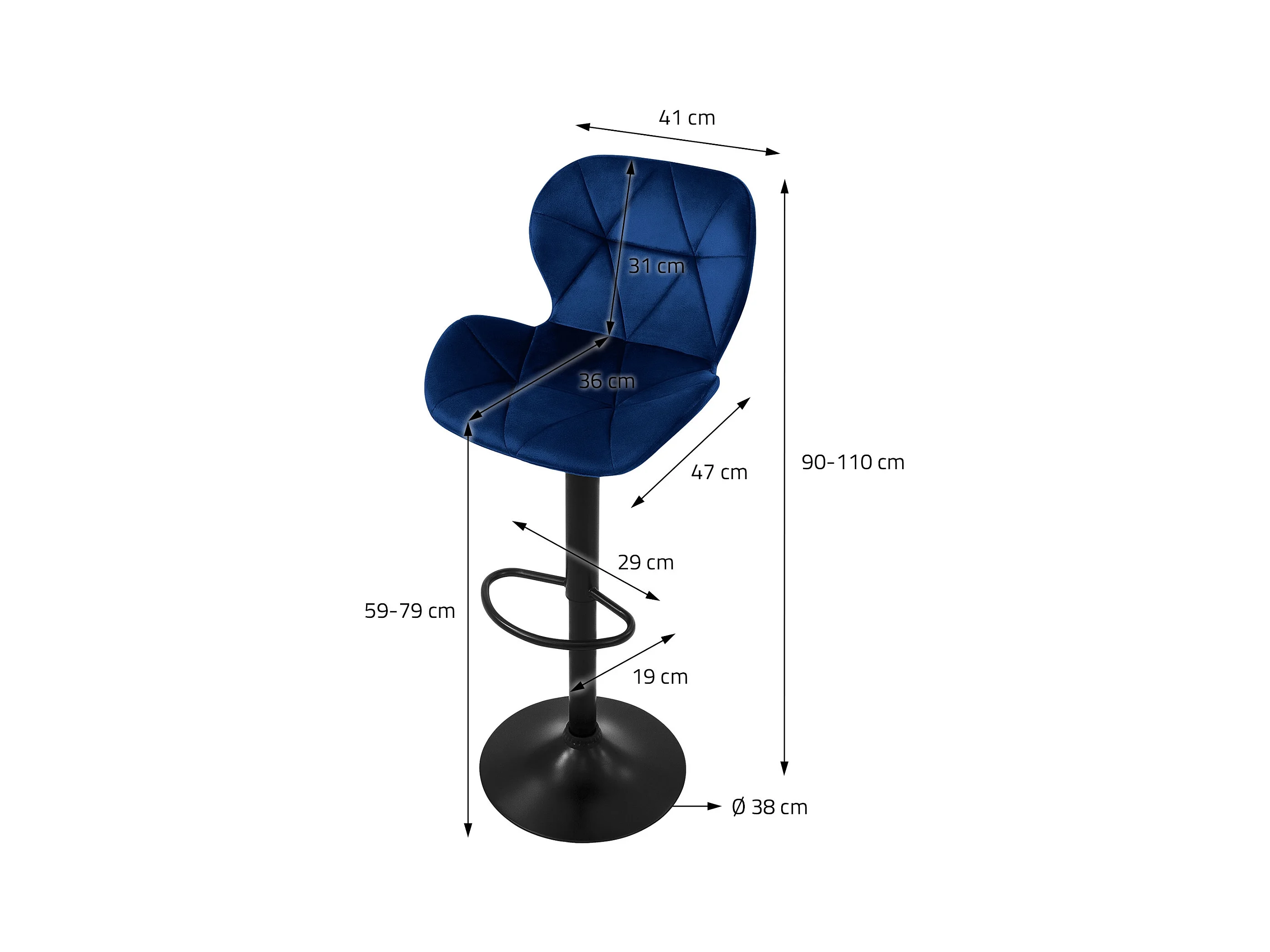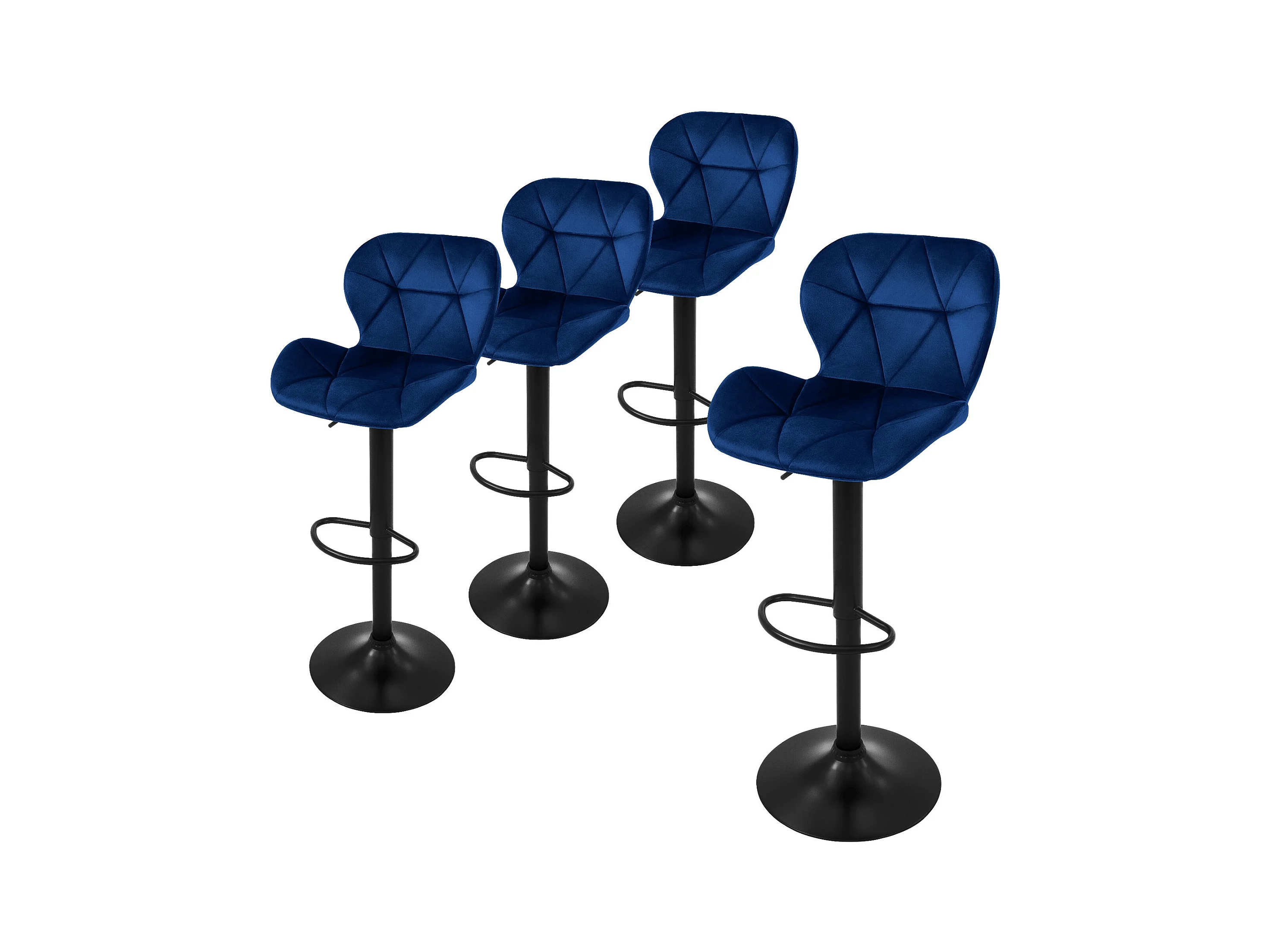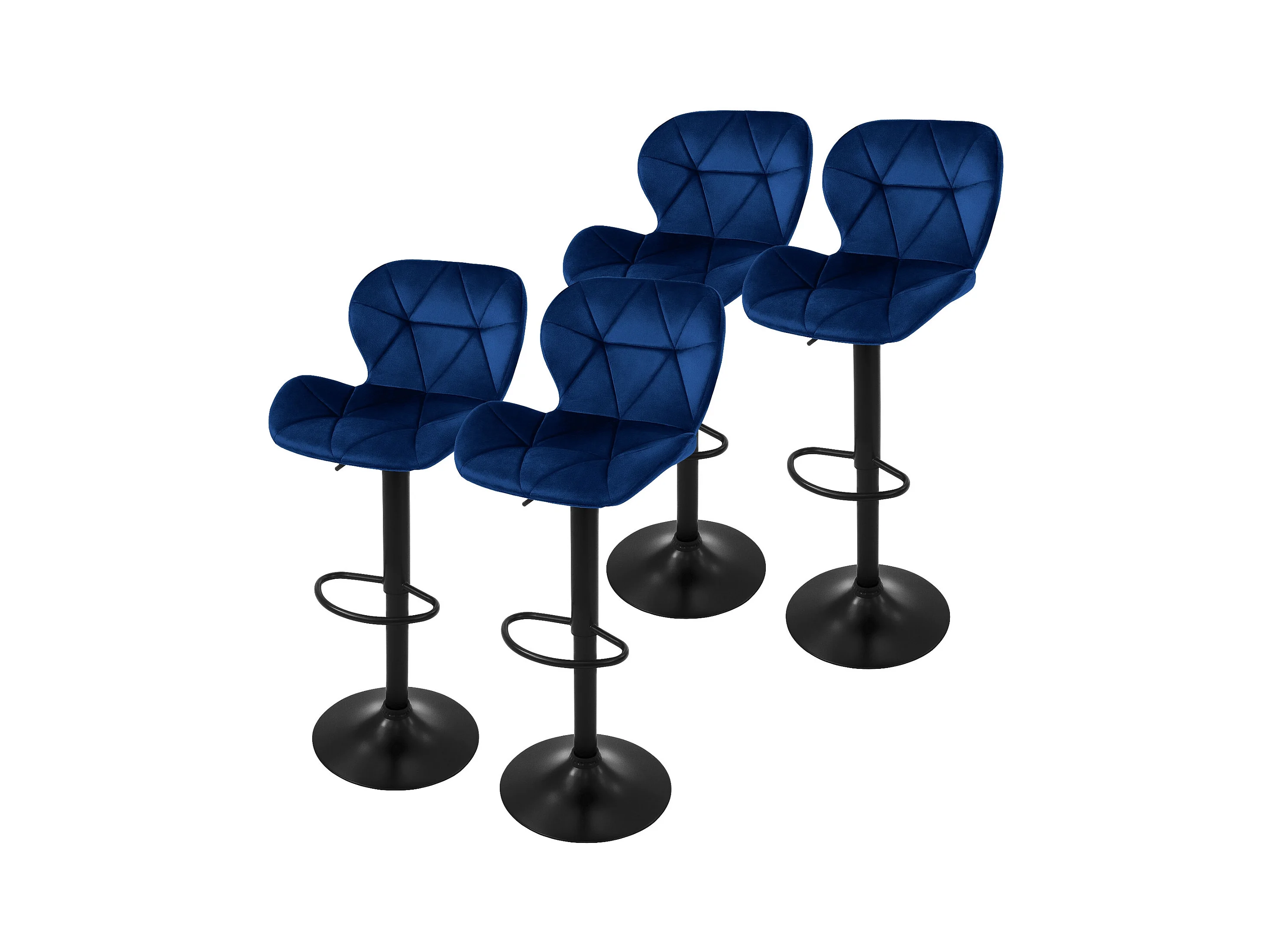 Lot 4 tabourets de bar rembourrées velours chaise bleu hauteur réglable 59-79 cm