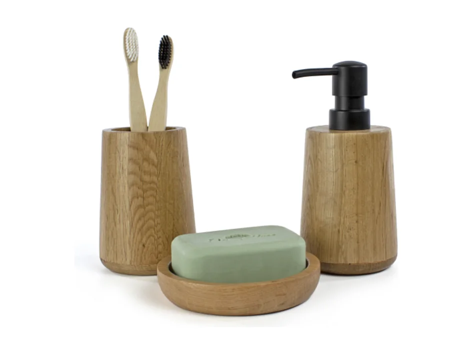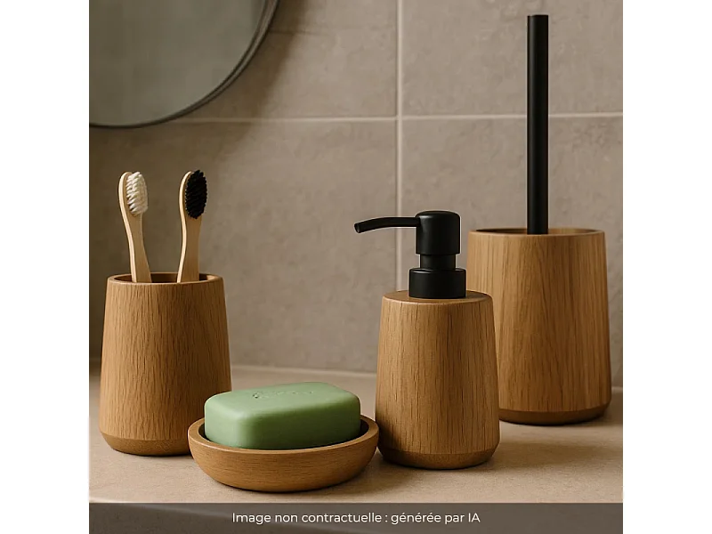 Lot d'accessoires WC DEBLANCH OAK en bois avec brosse wc + distributeur + gobelet + porte-savon
