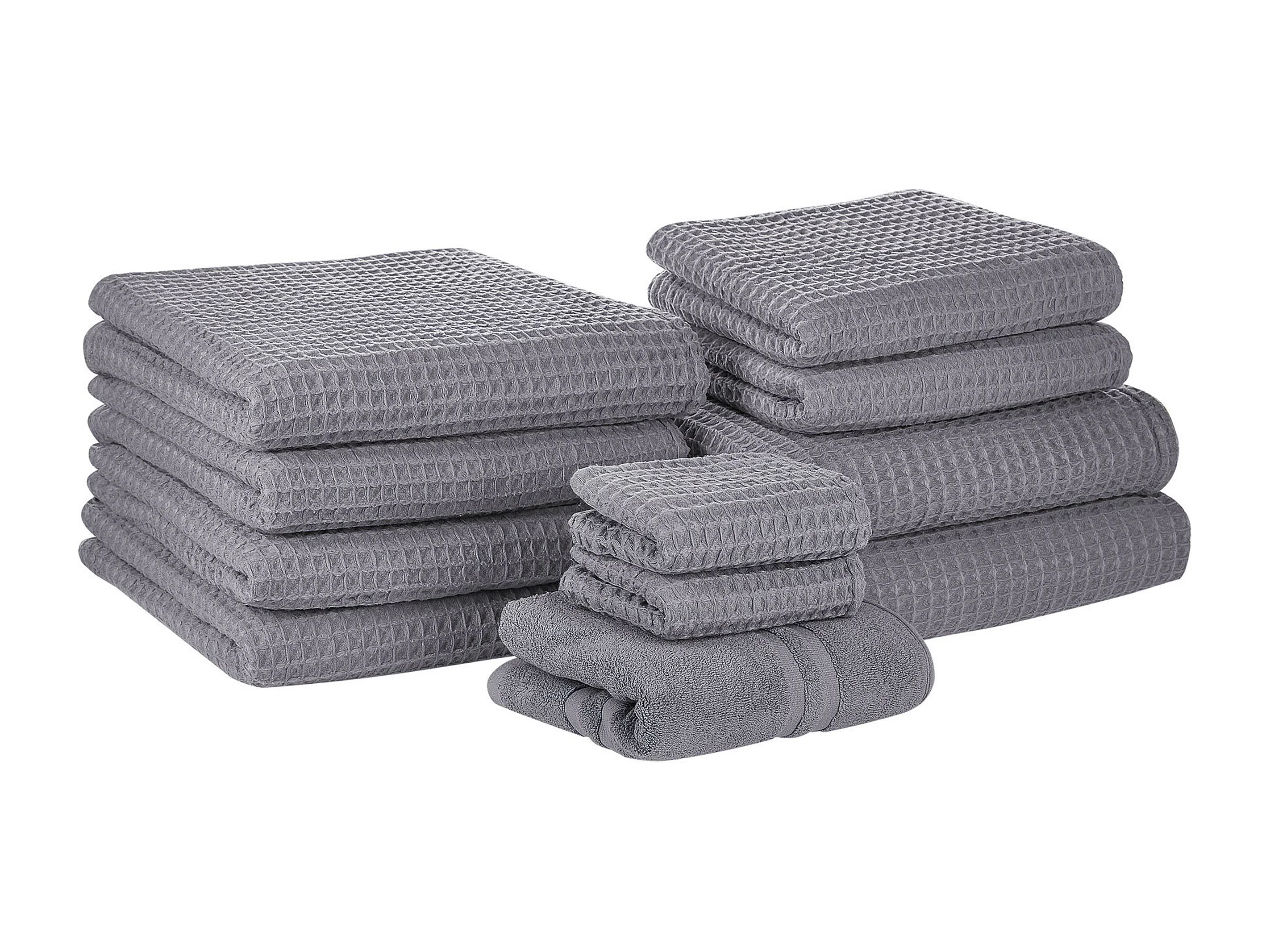 Lot de 9 serviettes ATIU Tissu éponge Gris