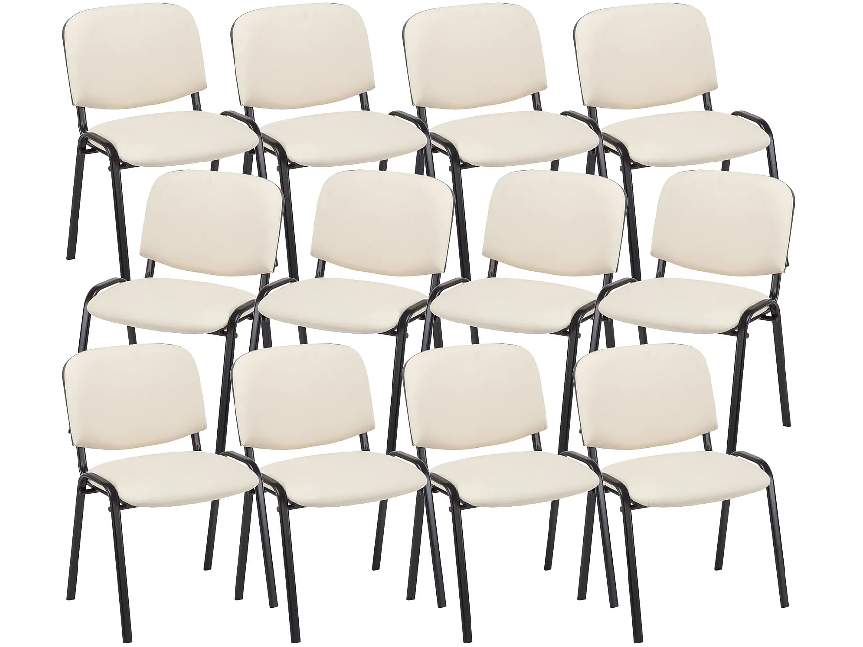 Lot de 12 Chaise de conférence - Similicuir & Métal noir mat - Crème - Ken