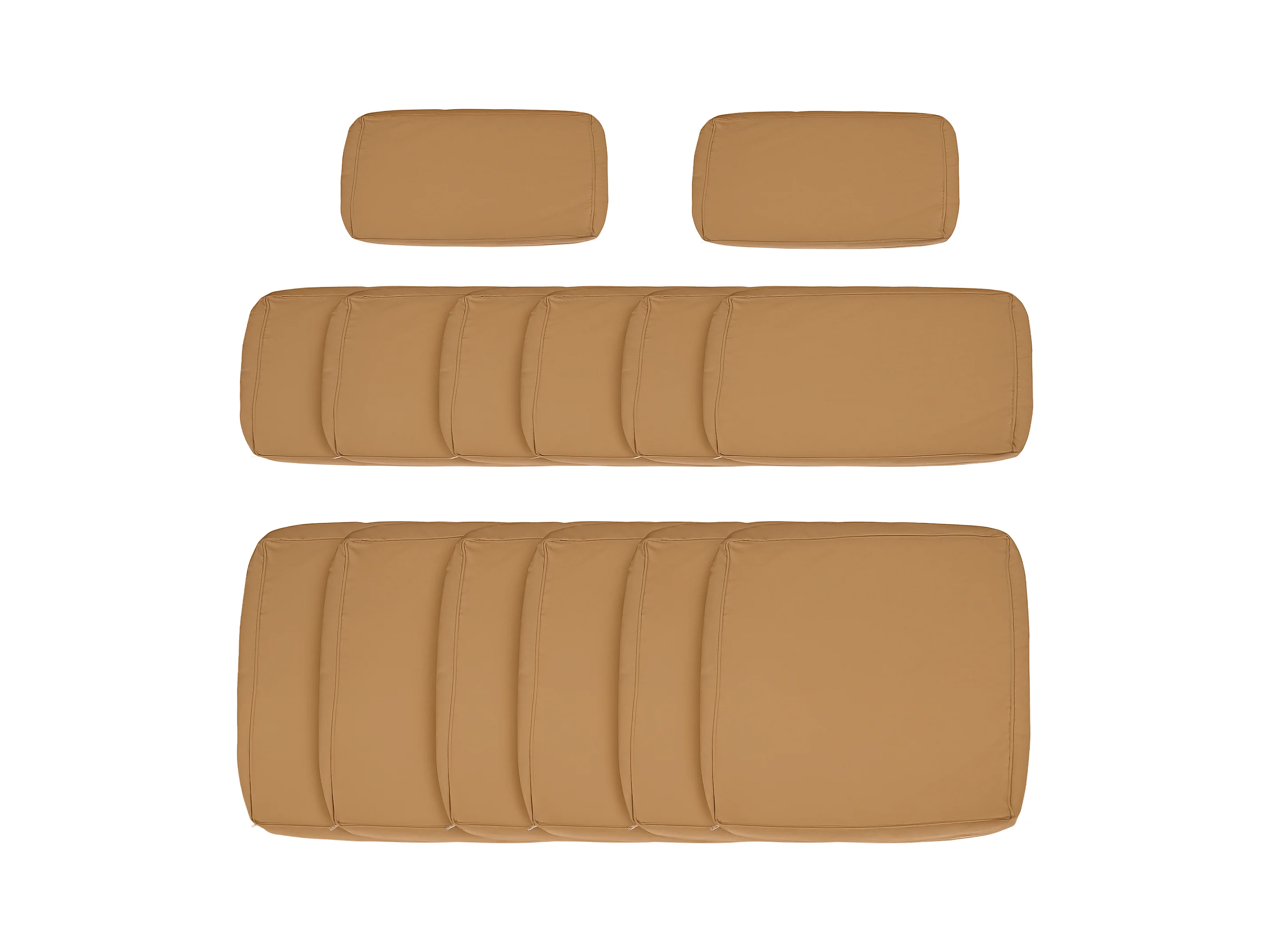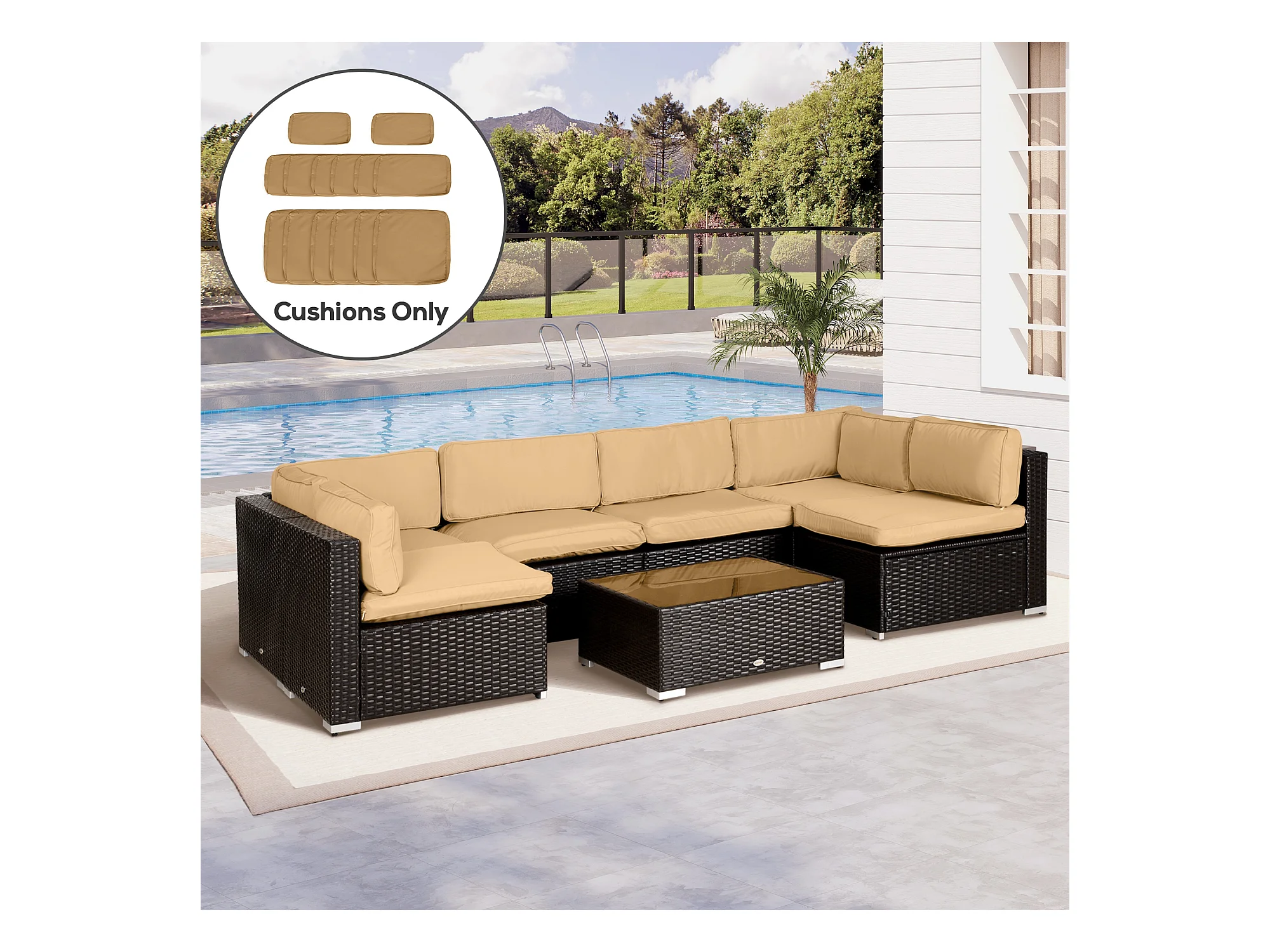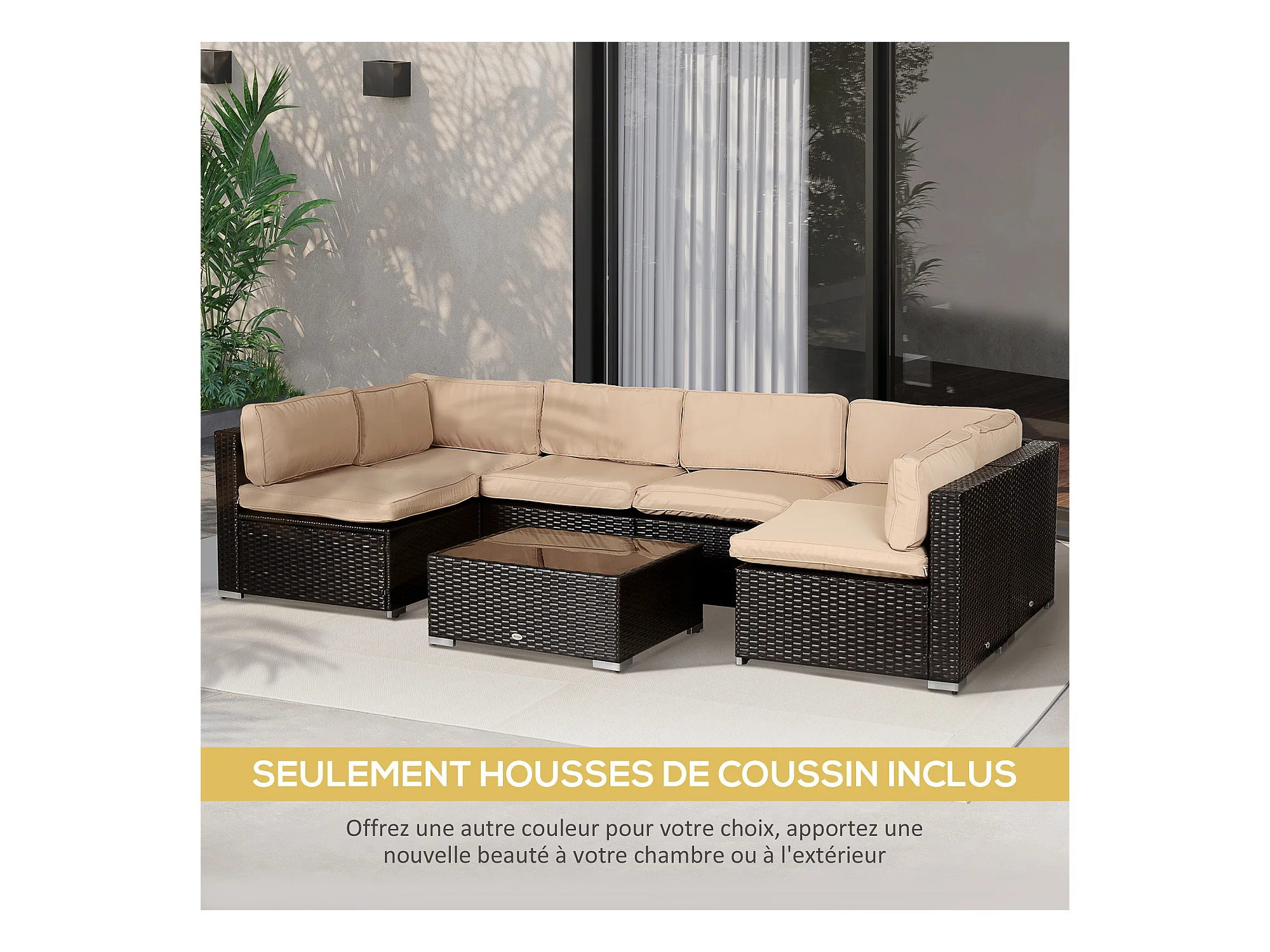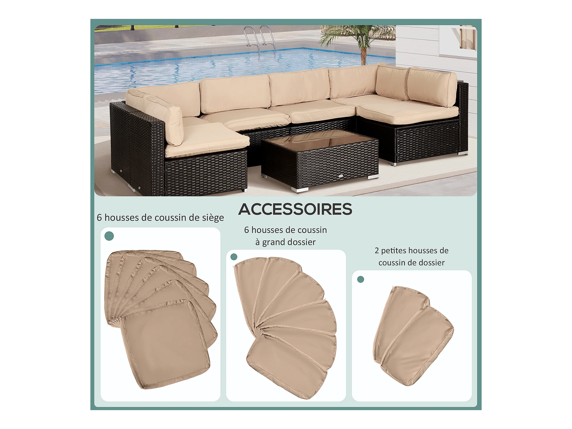 Lot de 14 housses de rechange coussins salon de jardin - 6 housses coussin d'assise, 8 housses coussin dossier - housses zippées polyester déperlant marron