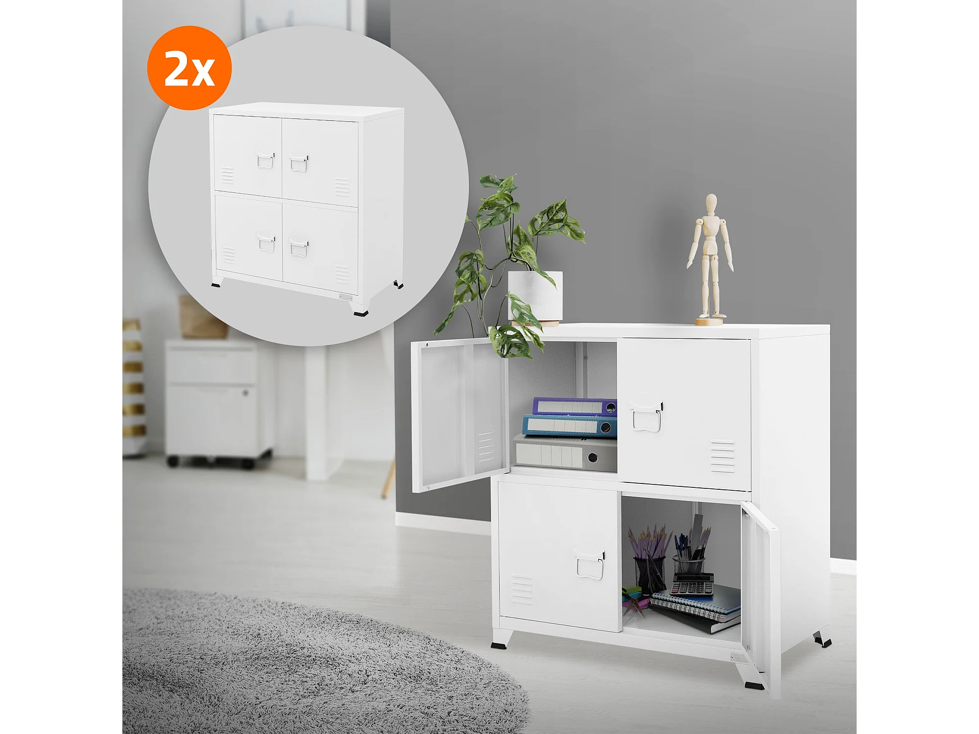 Lot de 2 armoires de bureau classement avec étagères en acier blanc 75x40x80,5cm