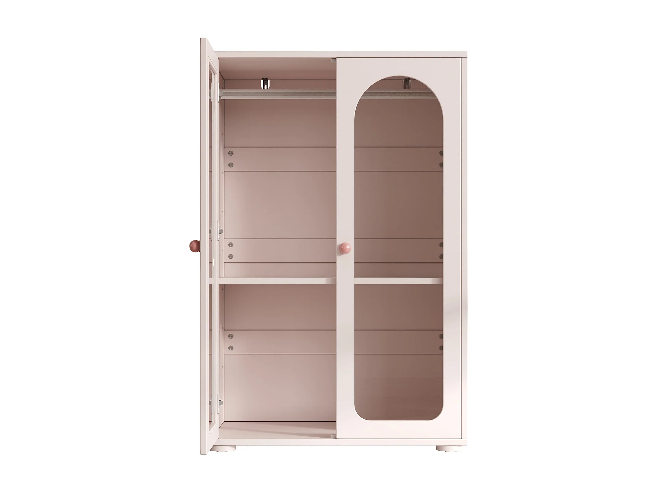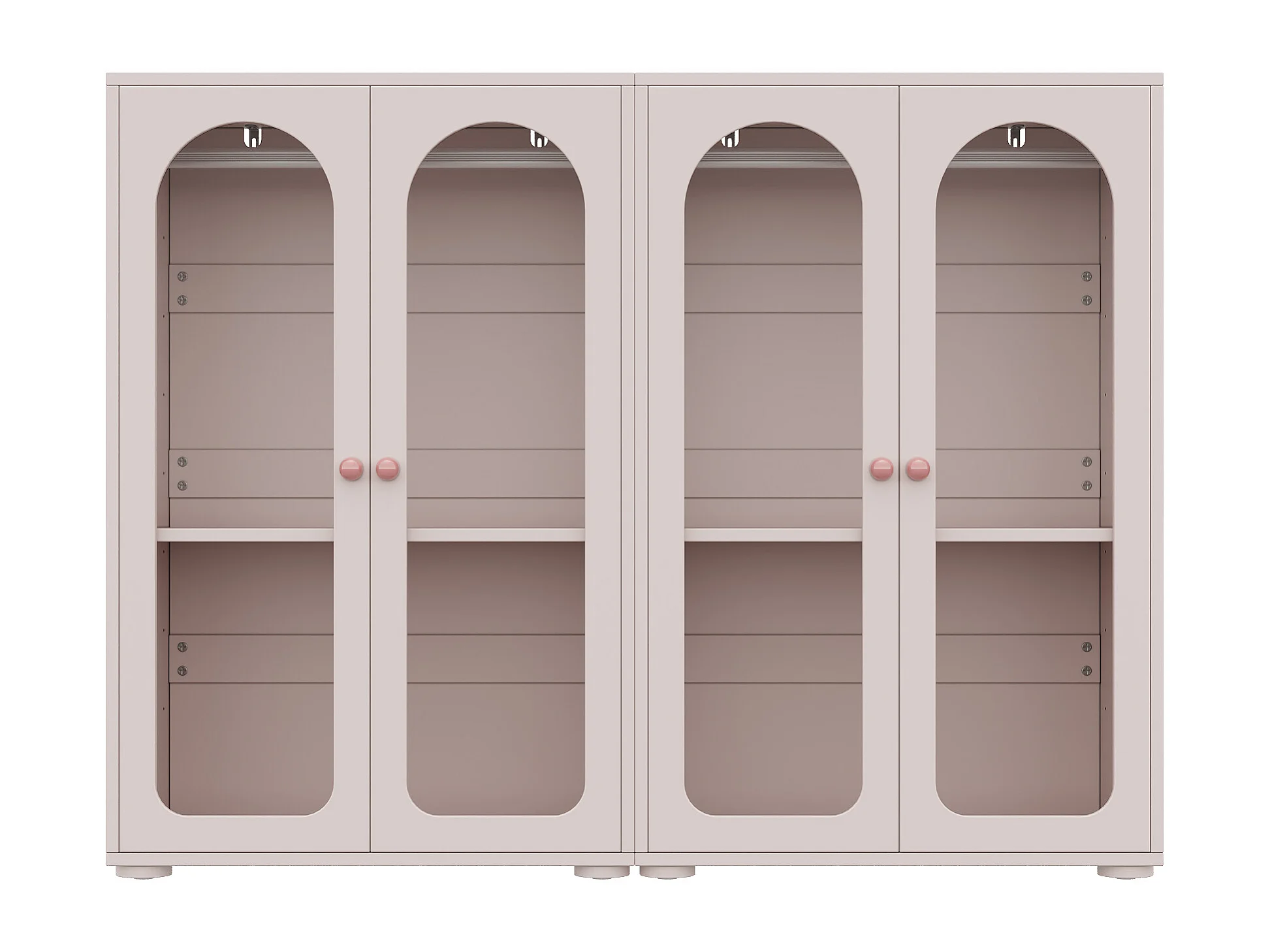 Lot de 2 armoires laquée pour enfant - 2 x 80 x 50 x 120 cm - avec tringle + 4 portes en acrylique transparent - MDF - rose