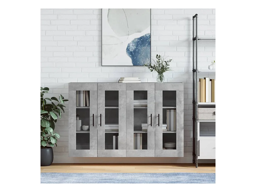 lot de 2 Armoires murales gris béton bois d'ingénierie QWE59736