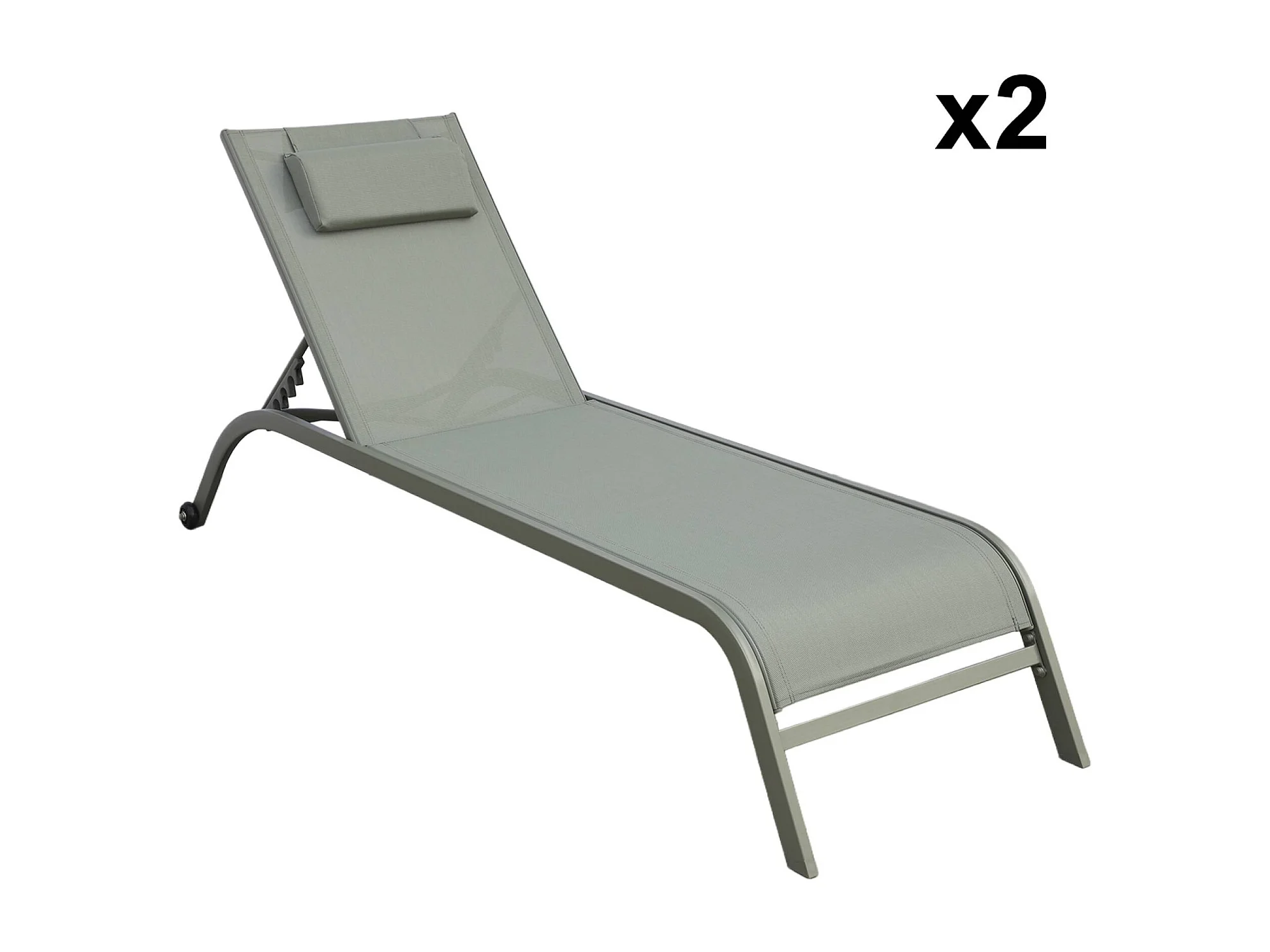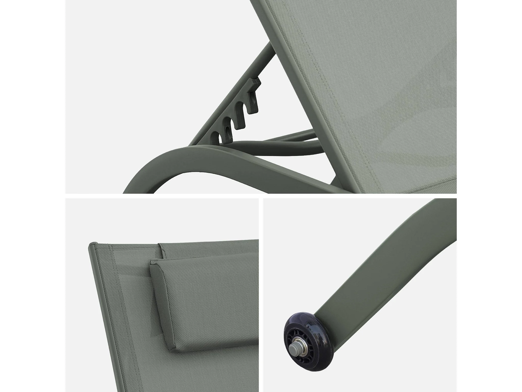 Lot de 2 bains de soleil acier kaki multi positions avec coussin et roulettes - Ona