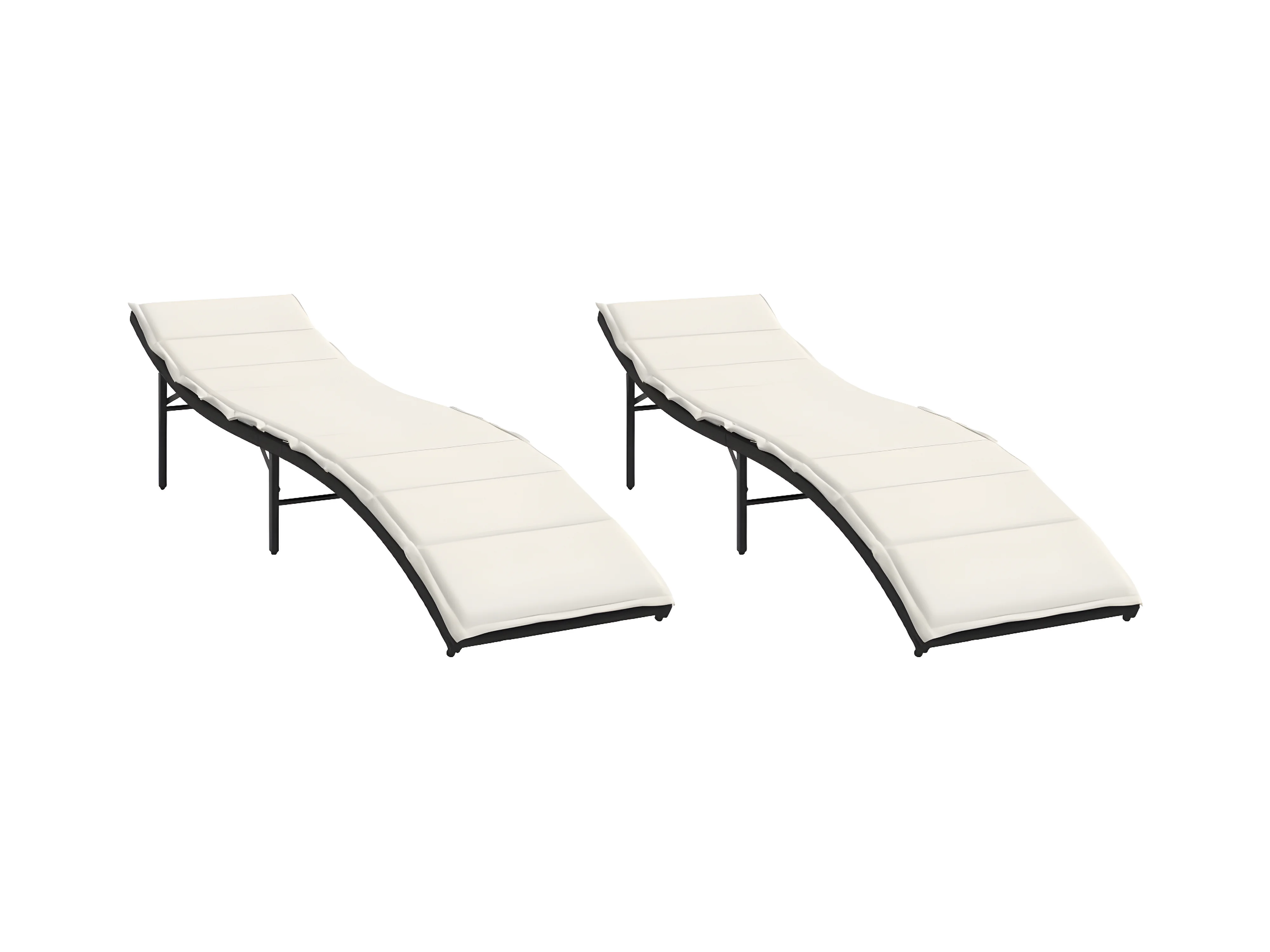 Lot de 2 Bains de soleil avec coussins noir résine tressée FR81611