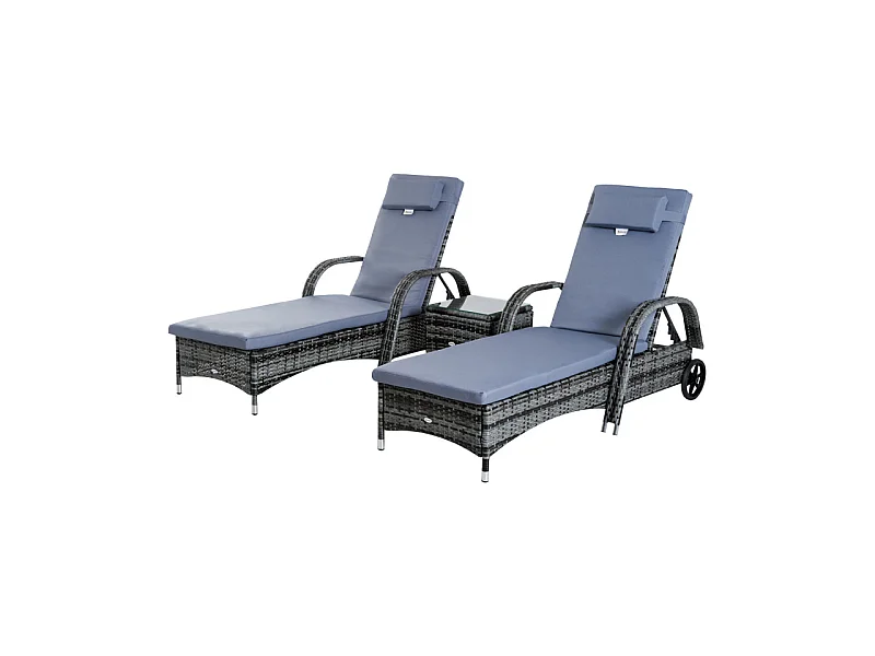 Lot de 2 bains de soleil avec table basse MARGOT gris