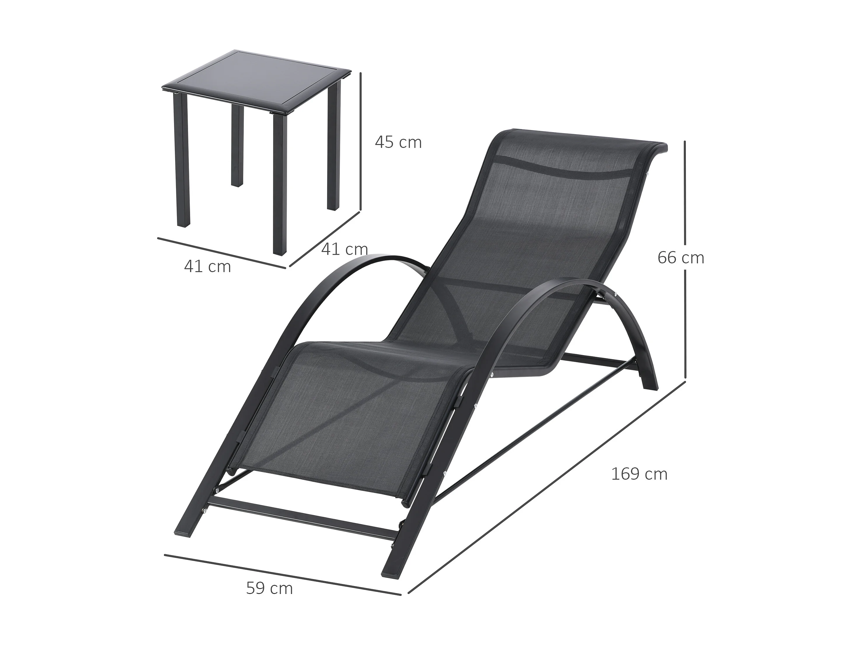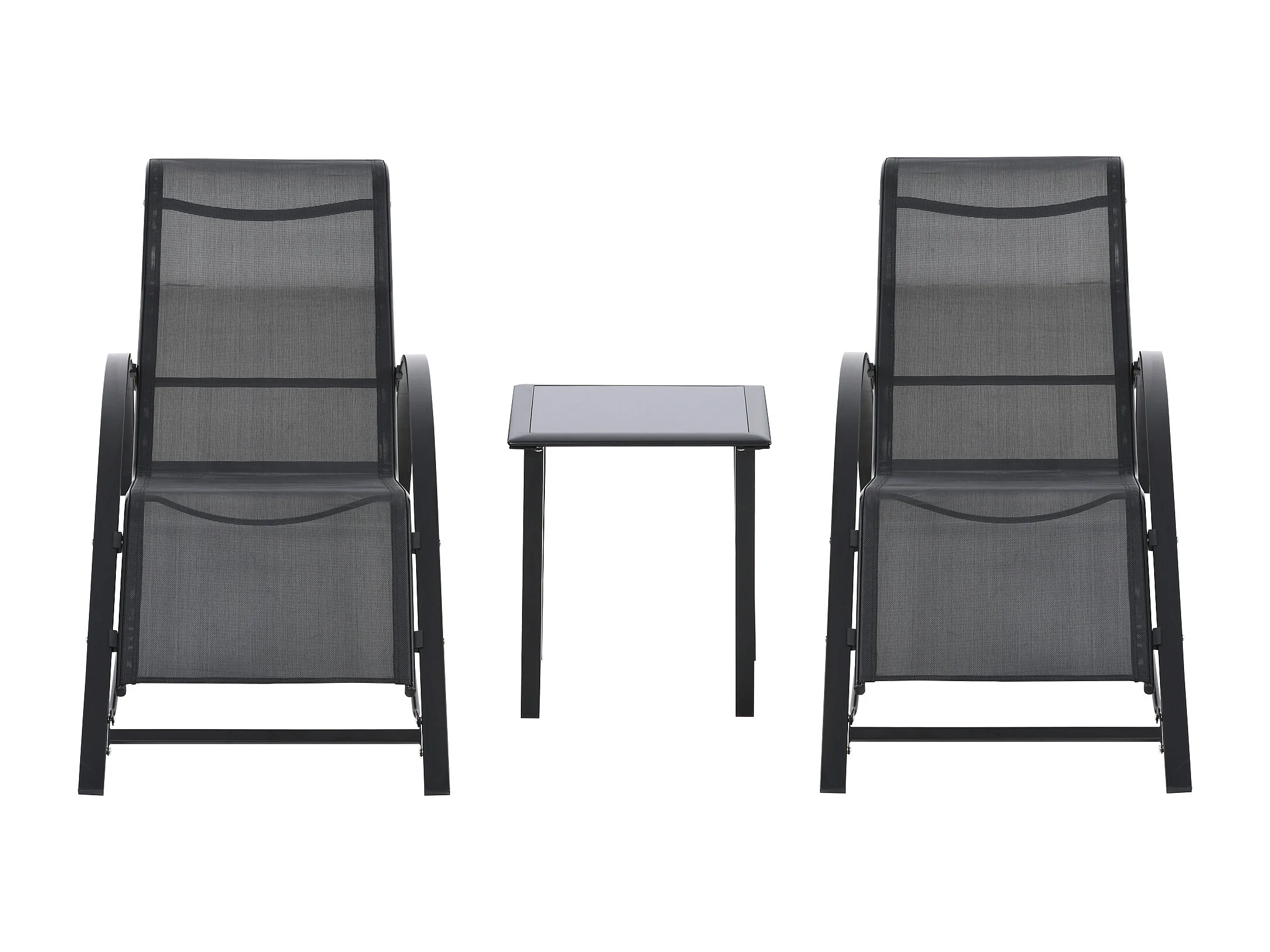 Lot de 2 bains de soleil design contemporain table basse plateau verre trempé métal époxy textilène noir