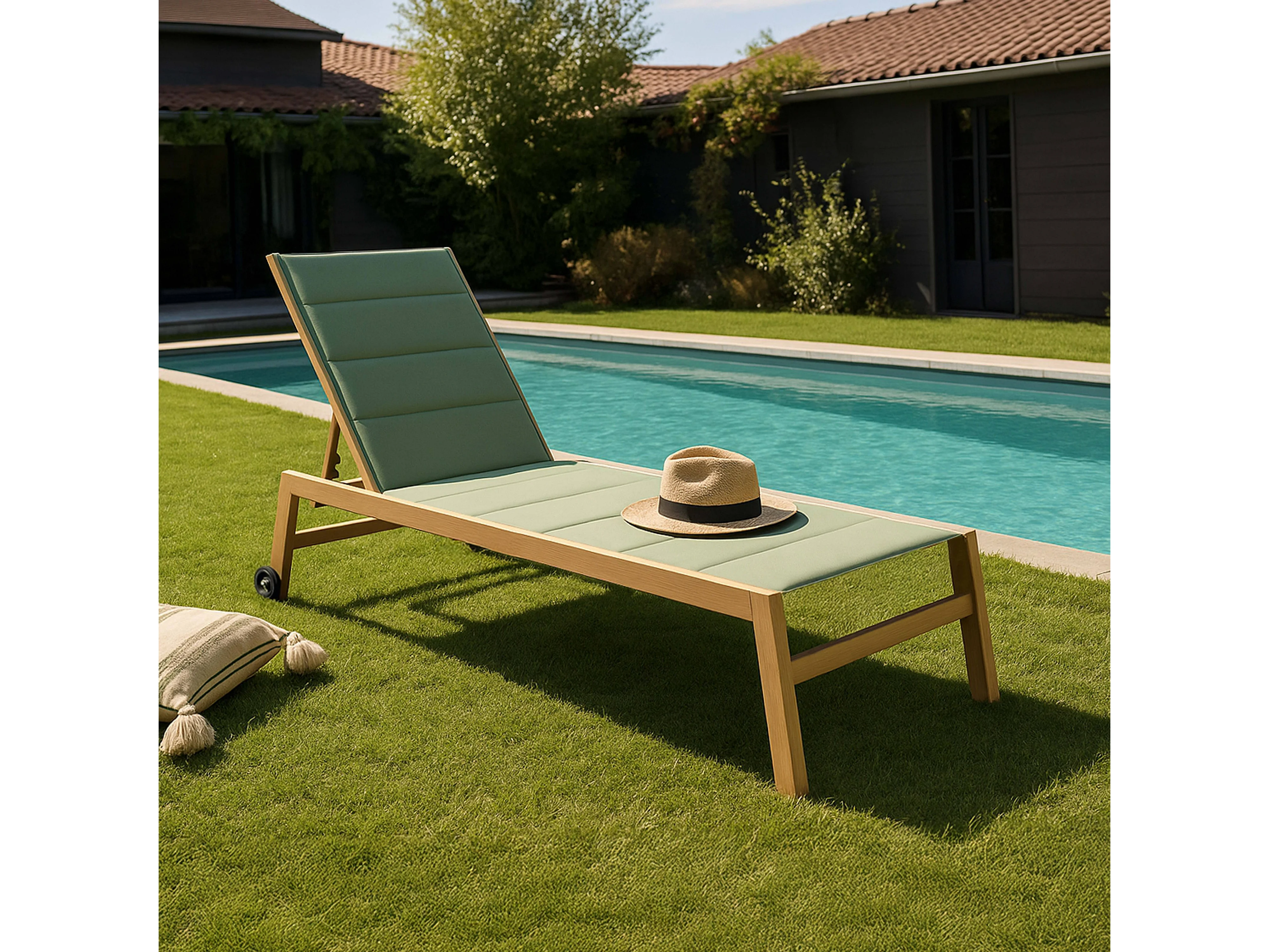 Lot de 2 bains de soleil effet bois inclinable avec roues vert sauge - Futuna