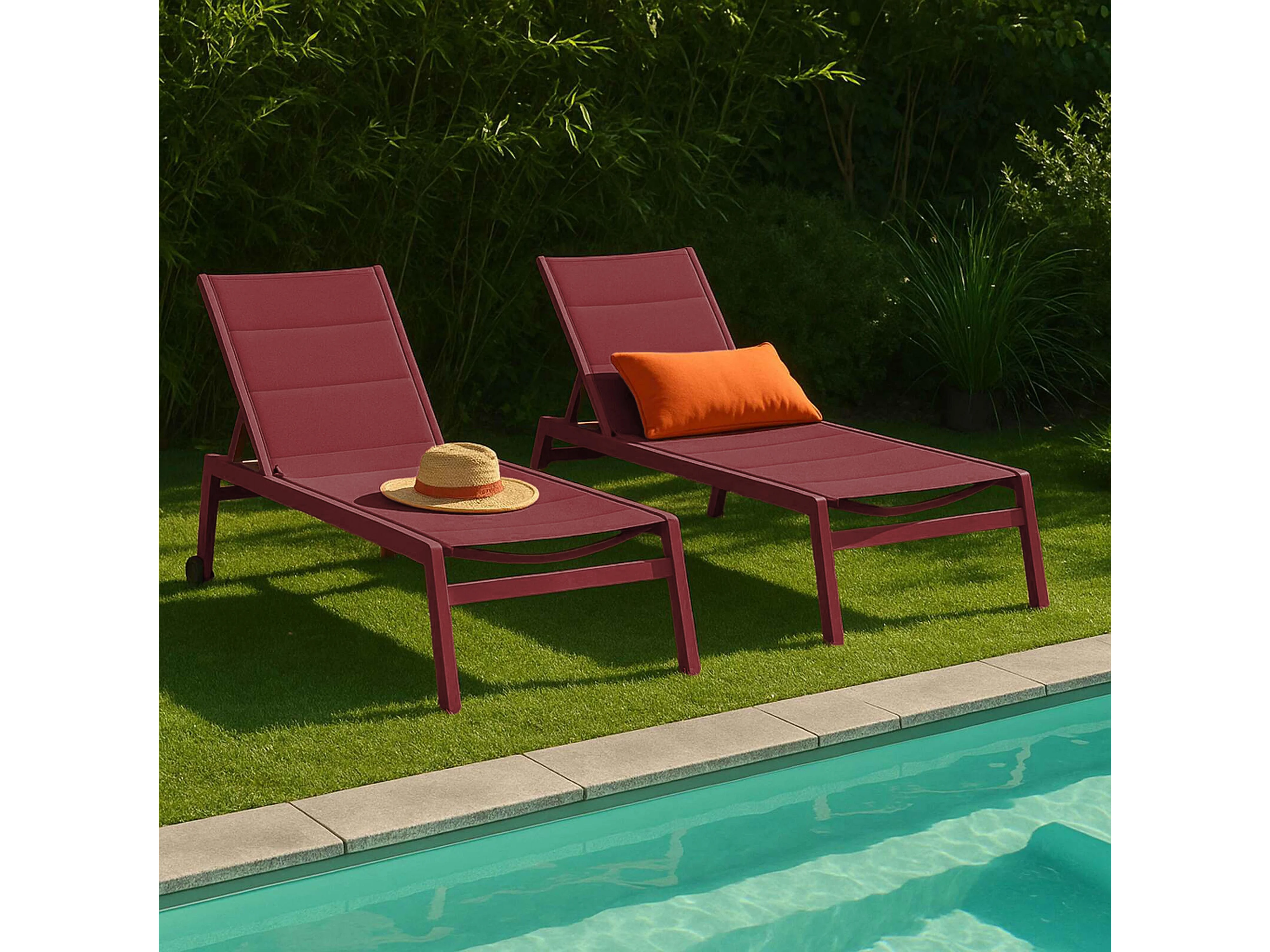 Lot de 2 bains de soleil en aluminium et textilène pourpre - Noumea