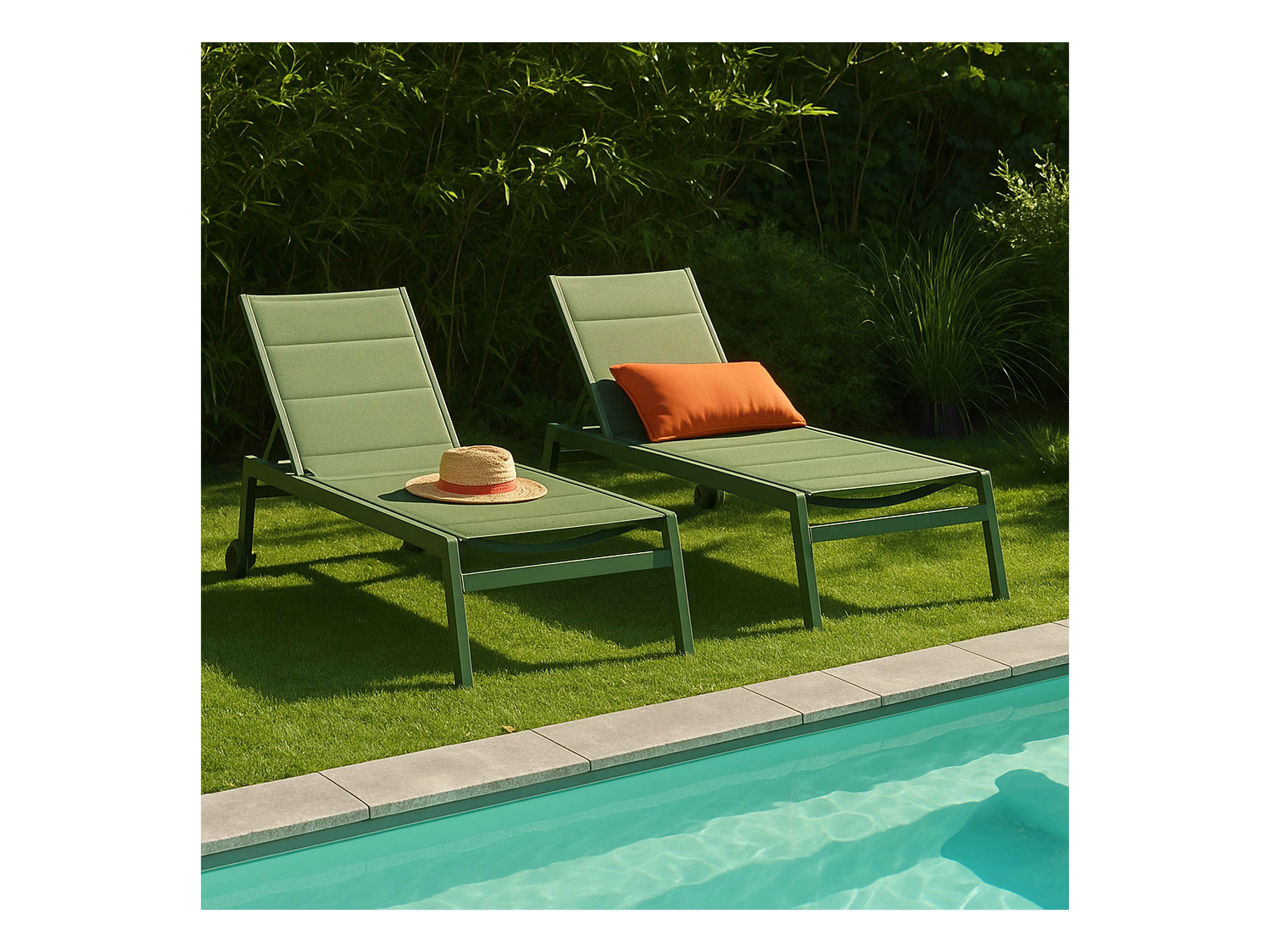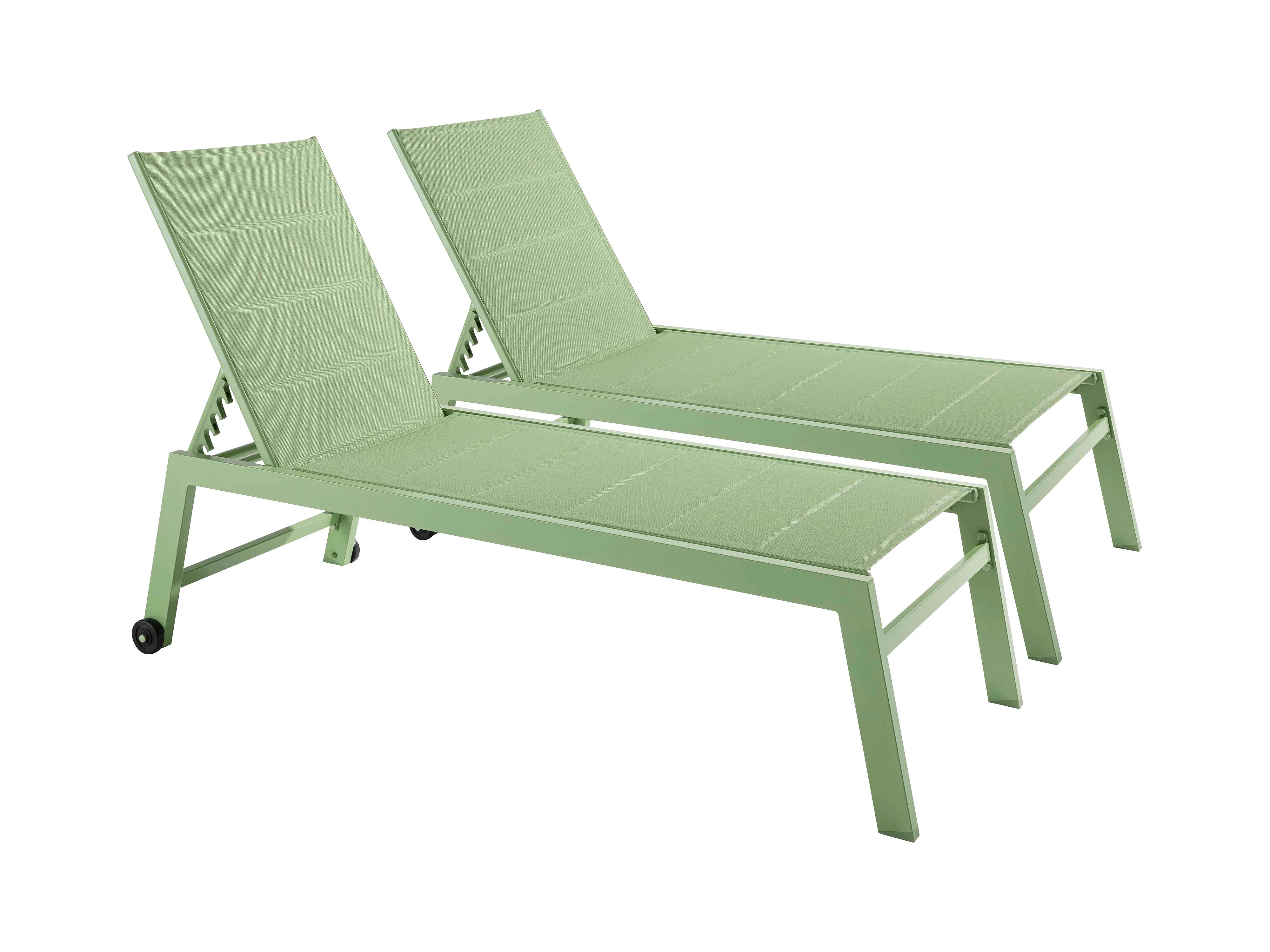 Lot de 2 bains de soleil en aluminium et textilène vert cactus - Noumea