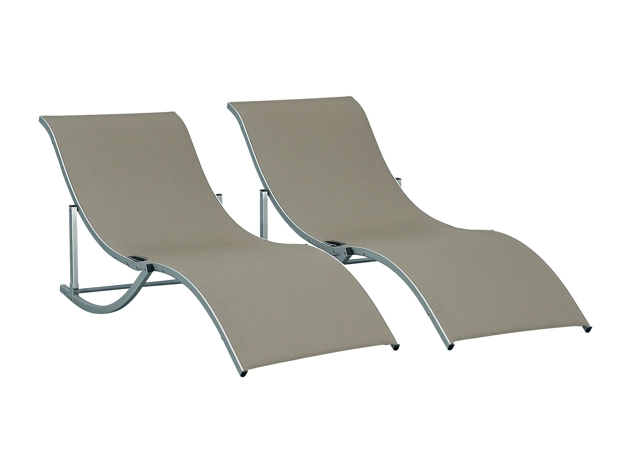 Lot de 2 bains de soleil pliables design contemporain - lot de 2 transats ergonomiques - alu. textilène gris clair