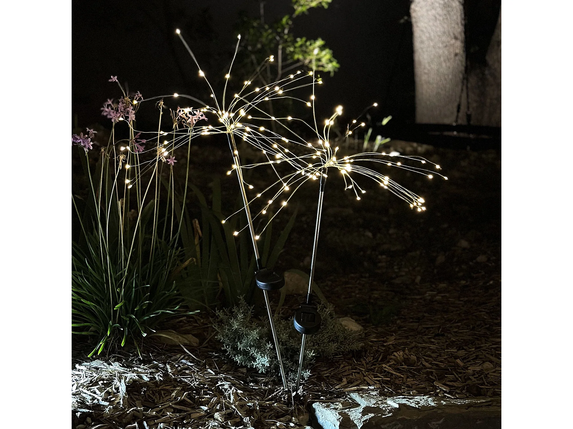 2 balises solaires à planter FIREWORKS Argent Acier H97cm