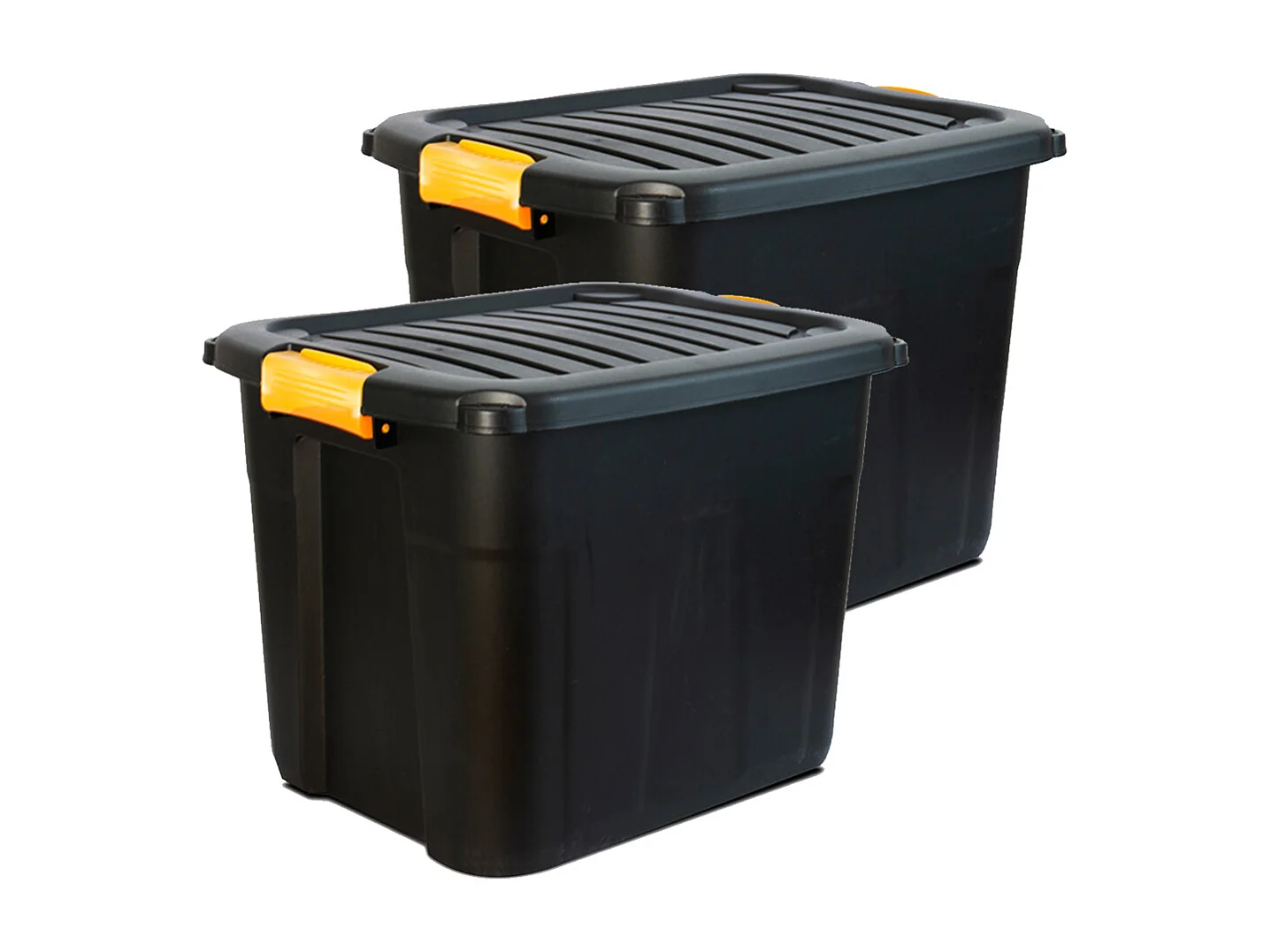 Lot de 2 boîtes de rangement en plastique noir/orange avec couvercle à clipser 60 L-Longueur 60 x Profondeur 39 x Hauteur 41 cm