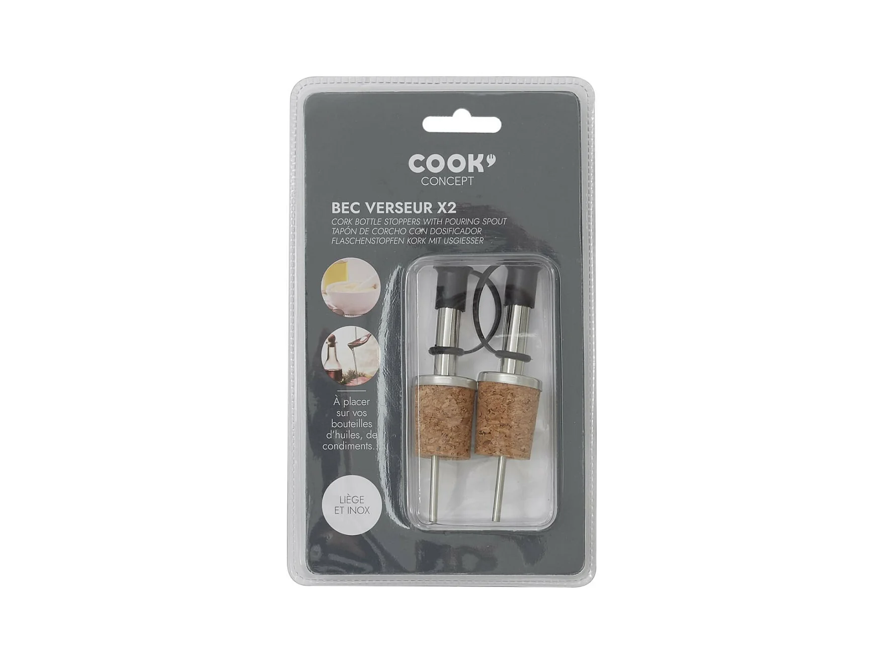 Lot de 2 Bouchons en Liège "Bec Verseur" 10cm Argent