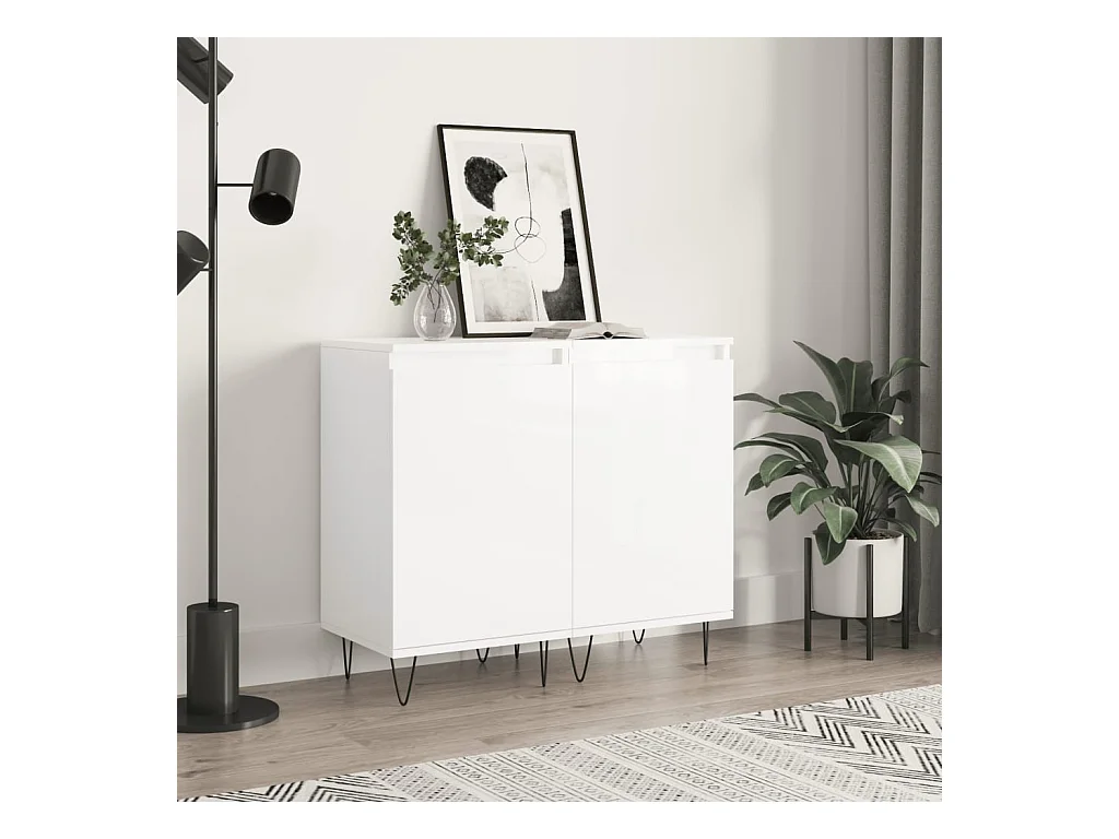 lot de 2 Buffets blanc brillant 40x35x70 cm bois d'ingénierie QWE69589
