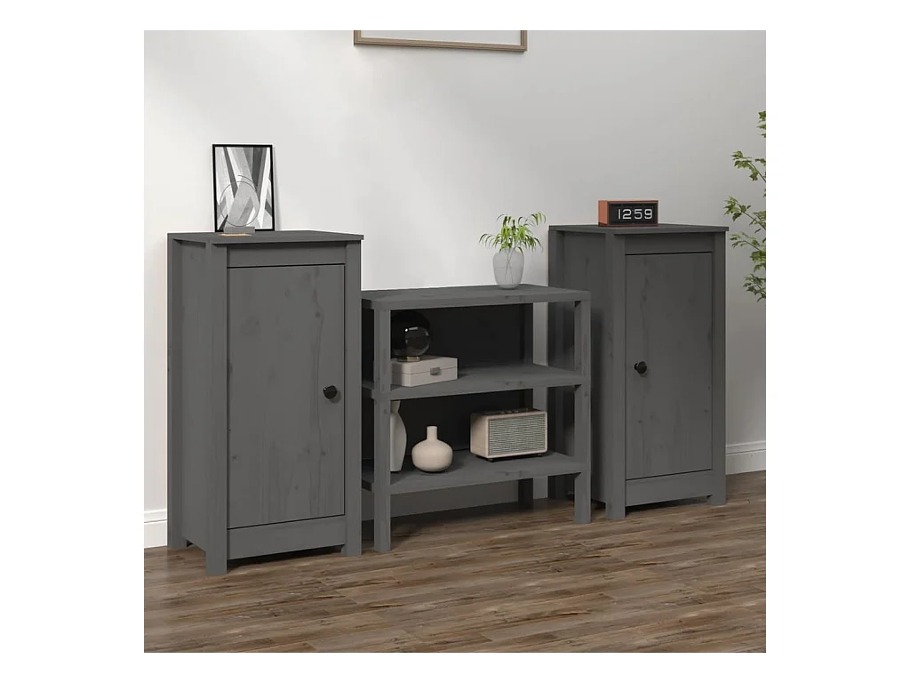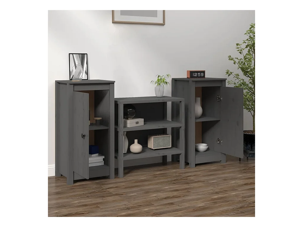 Buffet Gris 74x35x80 cm Bois massif de pin EGER27037