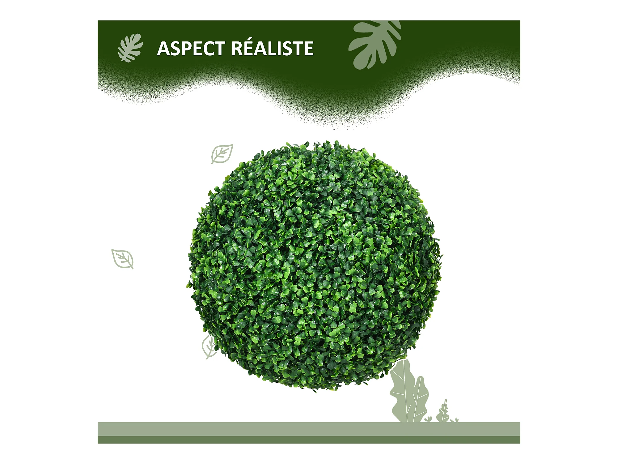 Lot de 2 buis artificiels topiaires artificielles en forme de boule Ø 40 cm PE vert