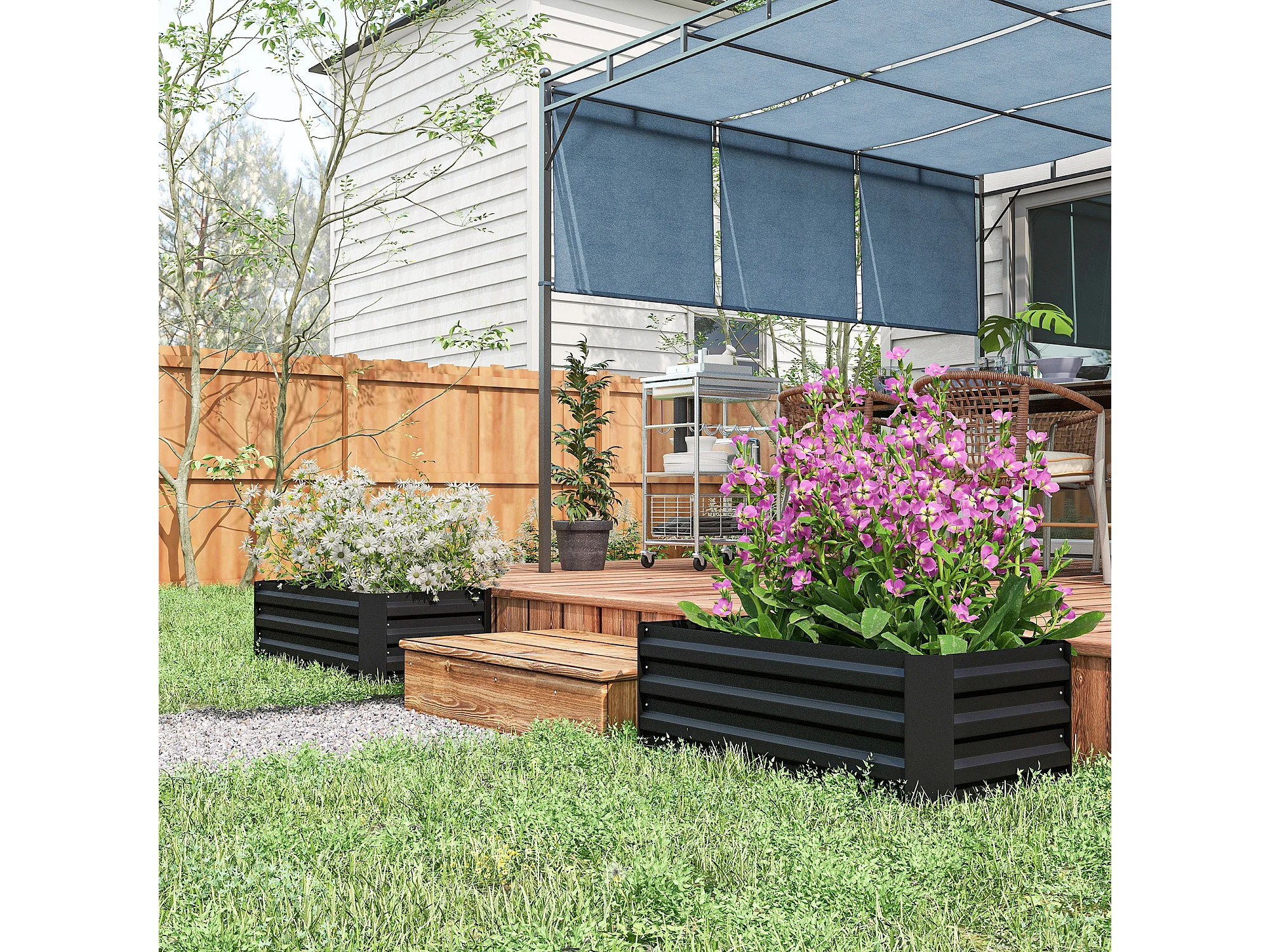 Lot de 2 carrés potager de jardin dim. 100L x 50l x 30H cm tôle d'acier ondulée noir