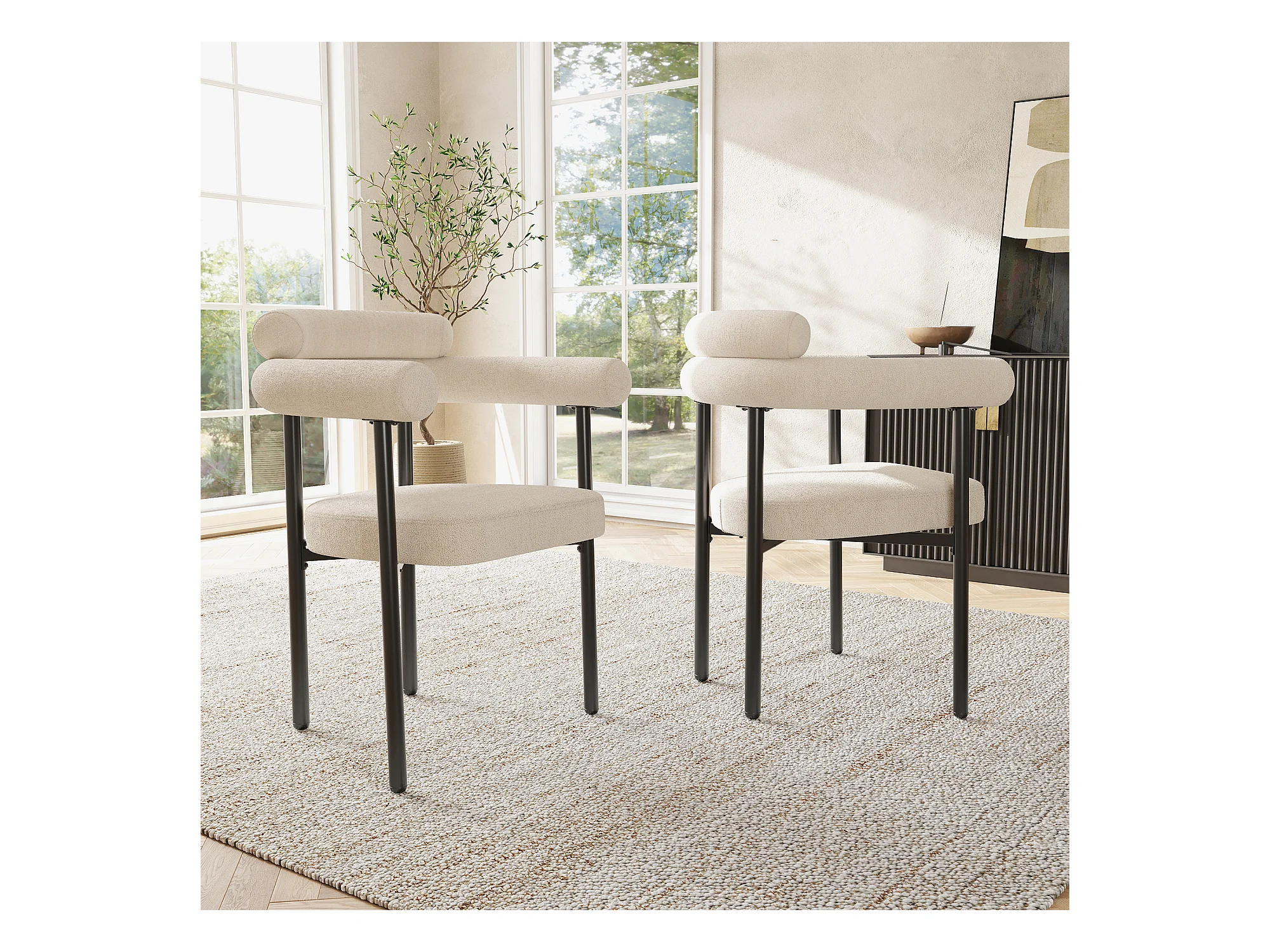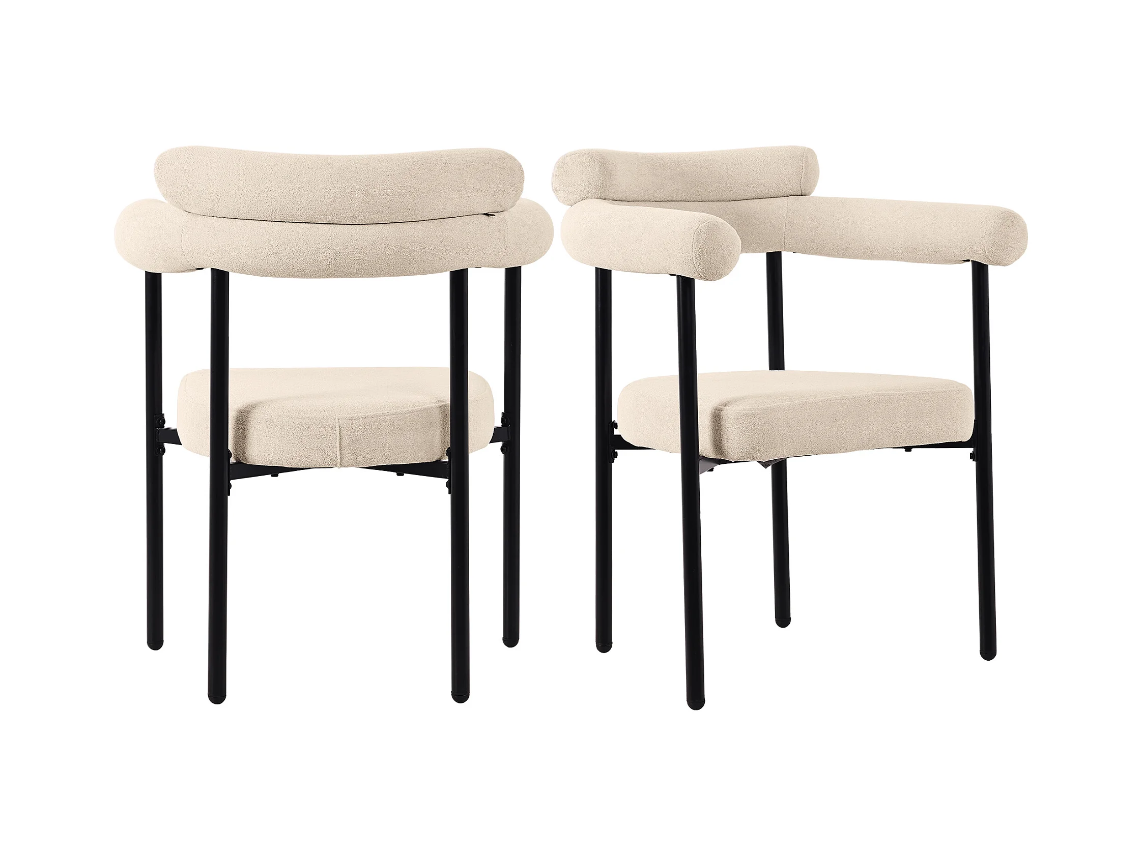 Lot de 2 chaise de salle à manger beige - Chaise de salle à manger avec dossier et accoudoirs - daim - pieds en métal noir