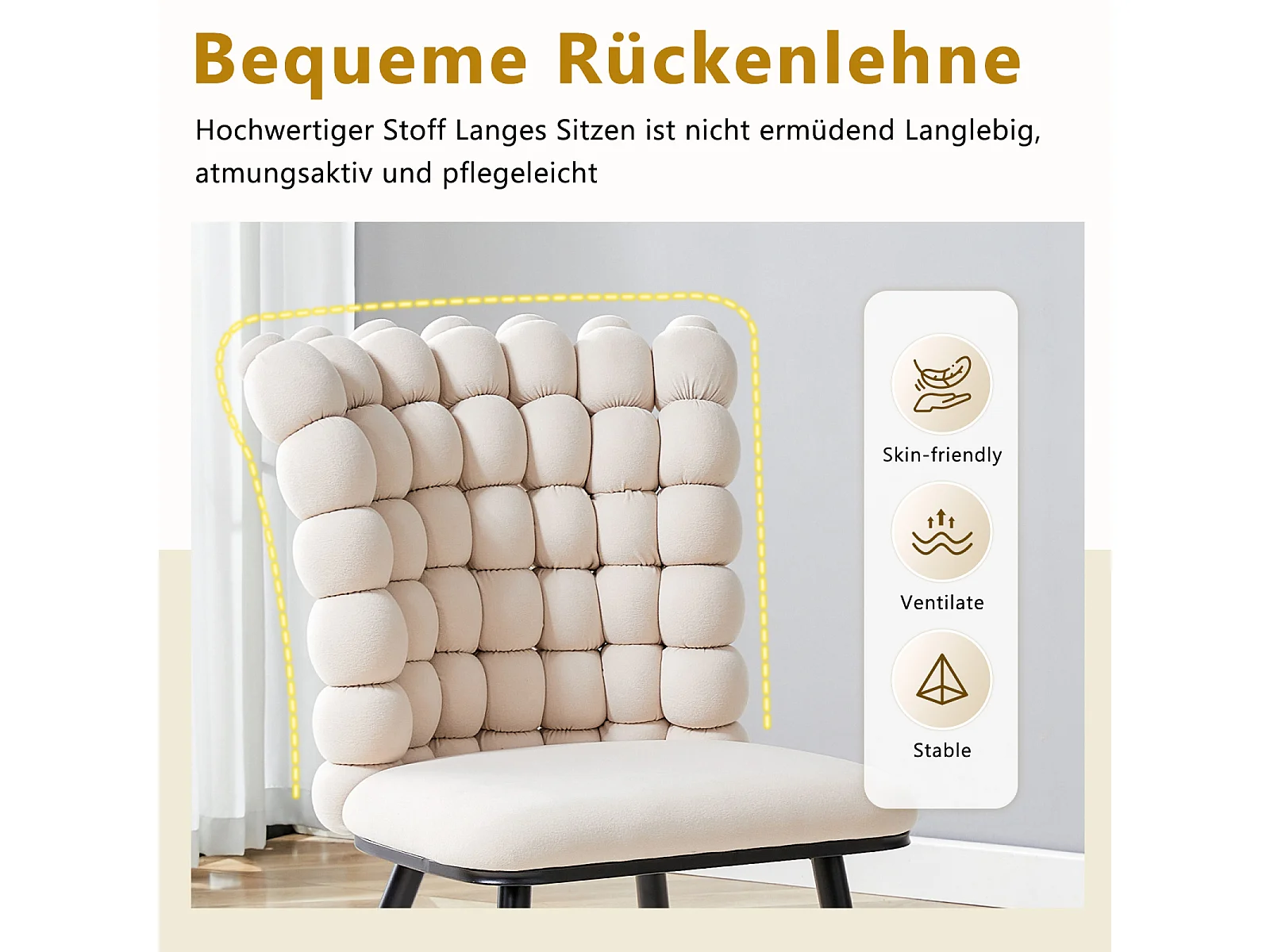 Lot de 2 chaise de salle à manger - pieds en métal - velours - blanc