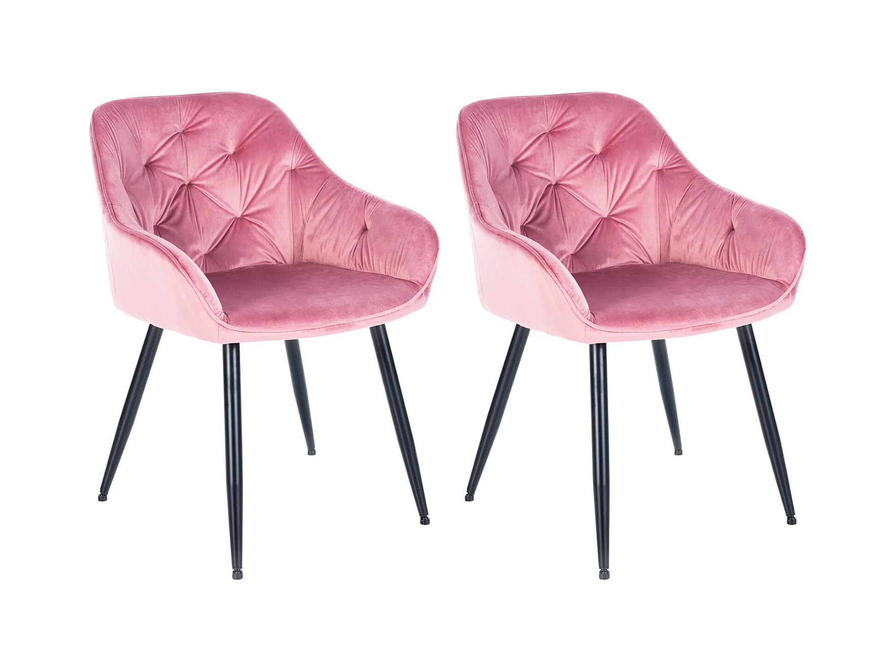 Lot de 2 chaises avec accoudoirs - Velours - Rose - Cassis