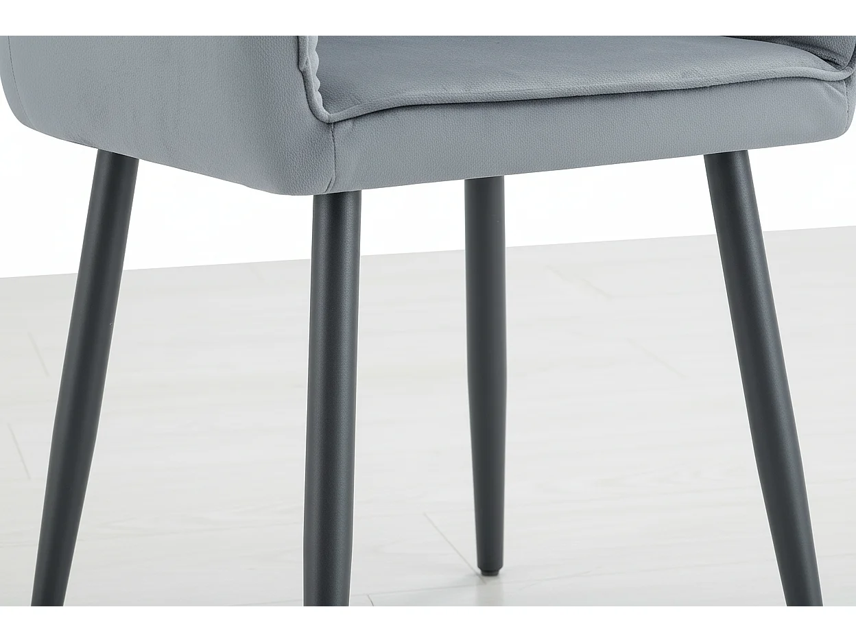Lot 2 Chaises Salle à Manger Jade Accoudoirs Velours Gris Pieds Métal Noir 53,5x53x84cm